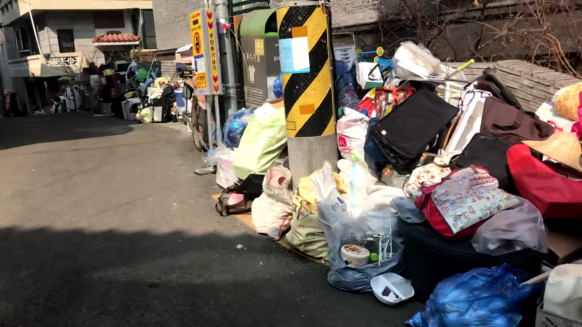 민원이 올라왔을 당시 주택가의 담을 따라 각종 쓰레기들이 방치된 상태였습니다.