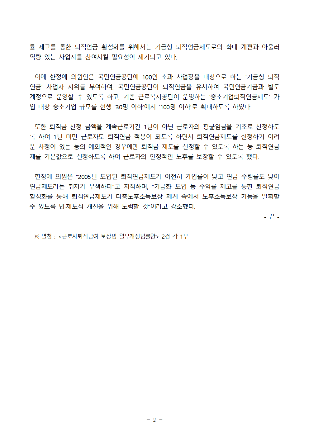 [보도자료] 퇴직연금 기금화하고 국민연금공단이 운용! 1년미만 근로자도 퇴직연금가입 및 퇴직연금제도로의 전면 전환!
