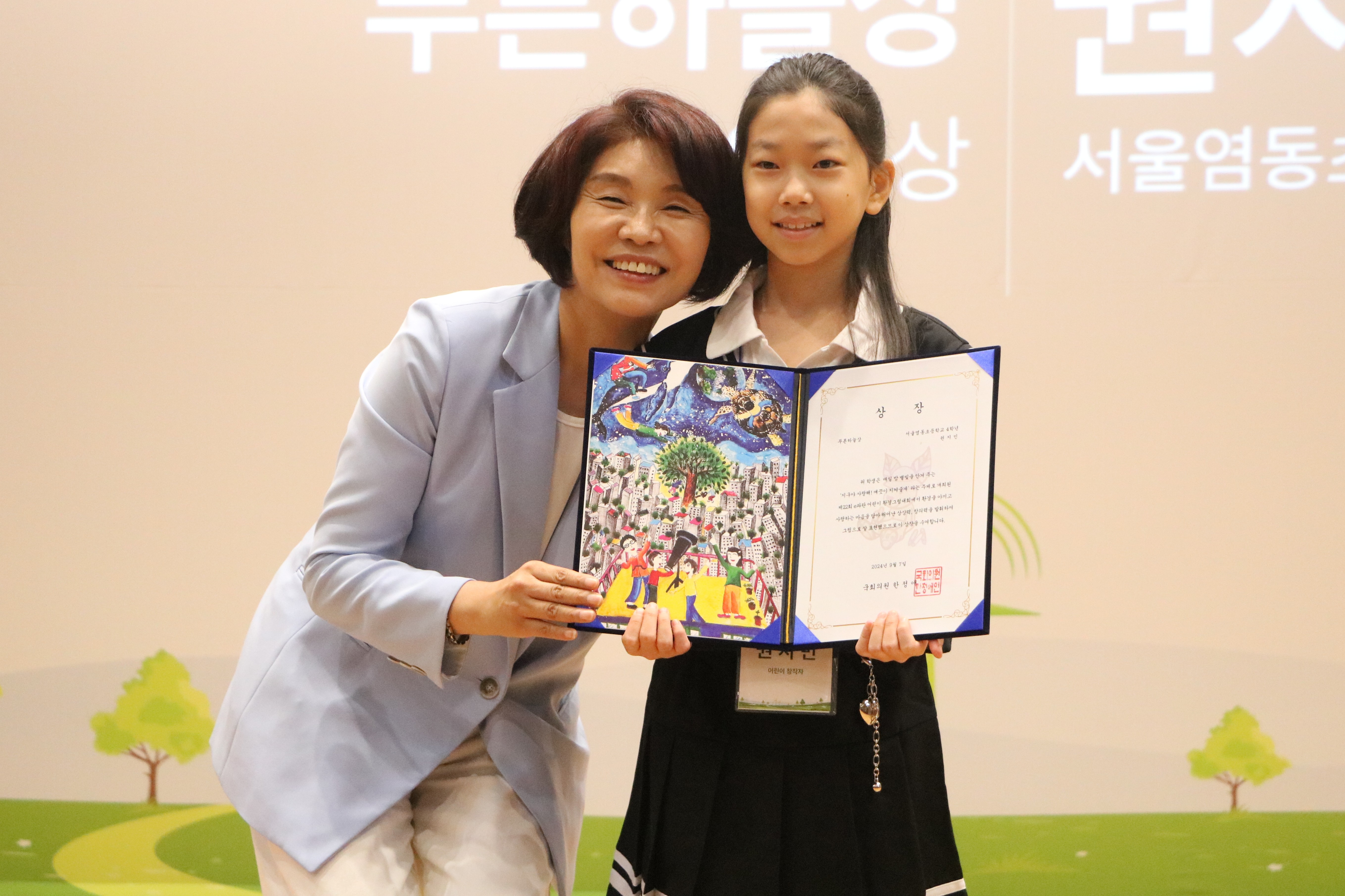 오늘 오후, 홈플러스e파란재단에서 개최하는 제22회 e파란 어린이 환경그림대회 시상식에 함께 했습니다.