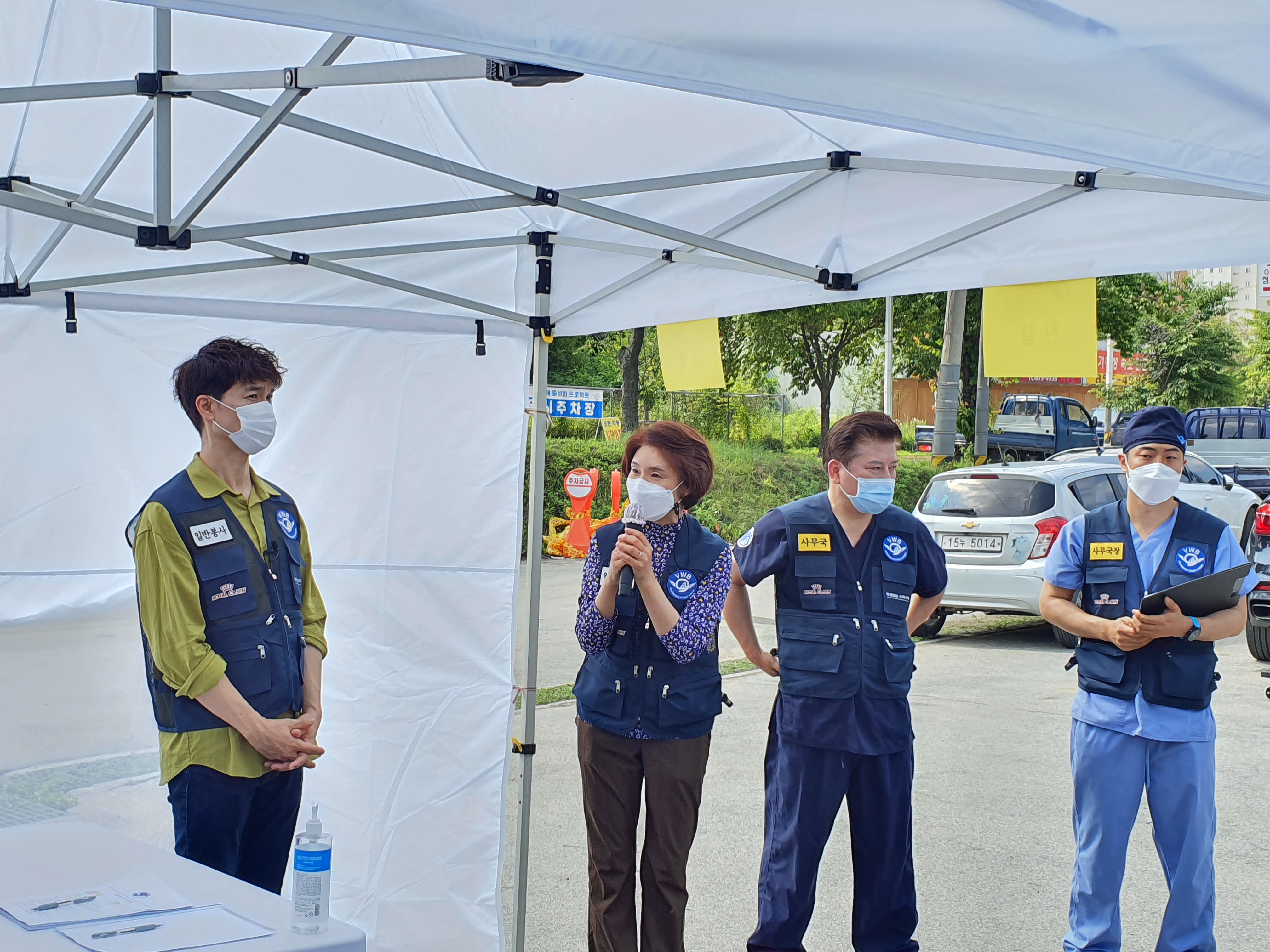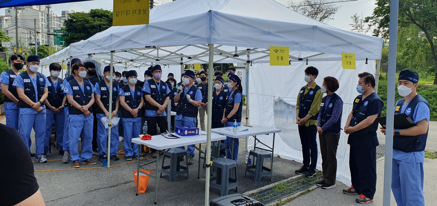 더운 날씨였지만 모두의 안전을 위해 천막 앞에서 체온 체크와 손소독도 필수!