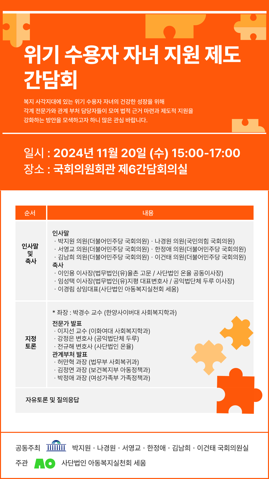 ❍ 주관: (사)아동복지실천회 세움