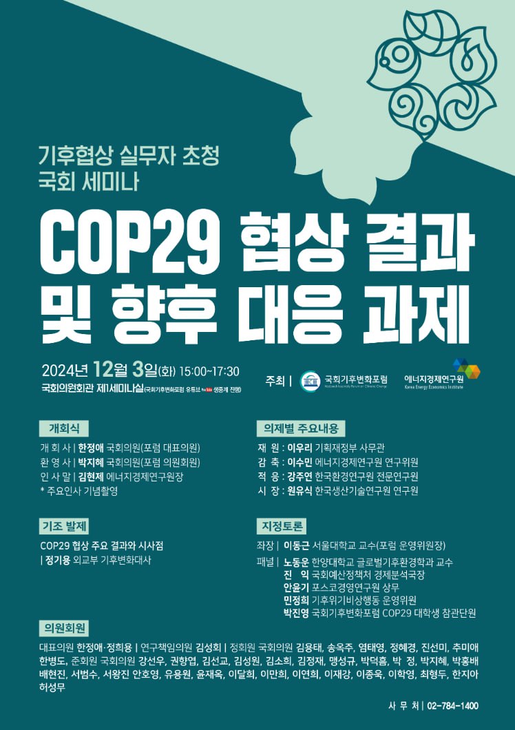 기후협상 실무자 초청 국회 세미나<COP29 협상 결과 및 향후 대응 과제>