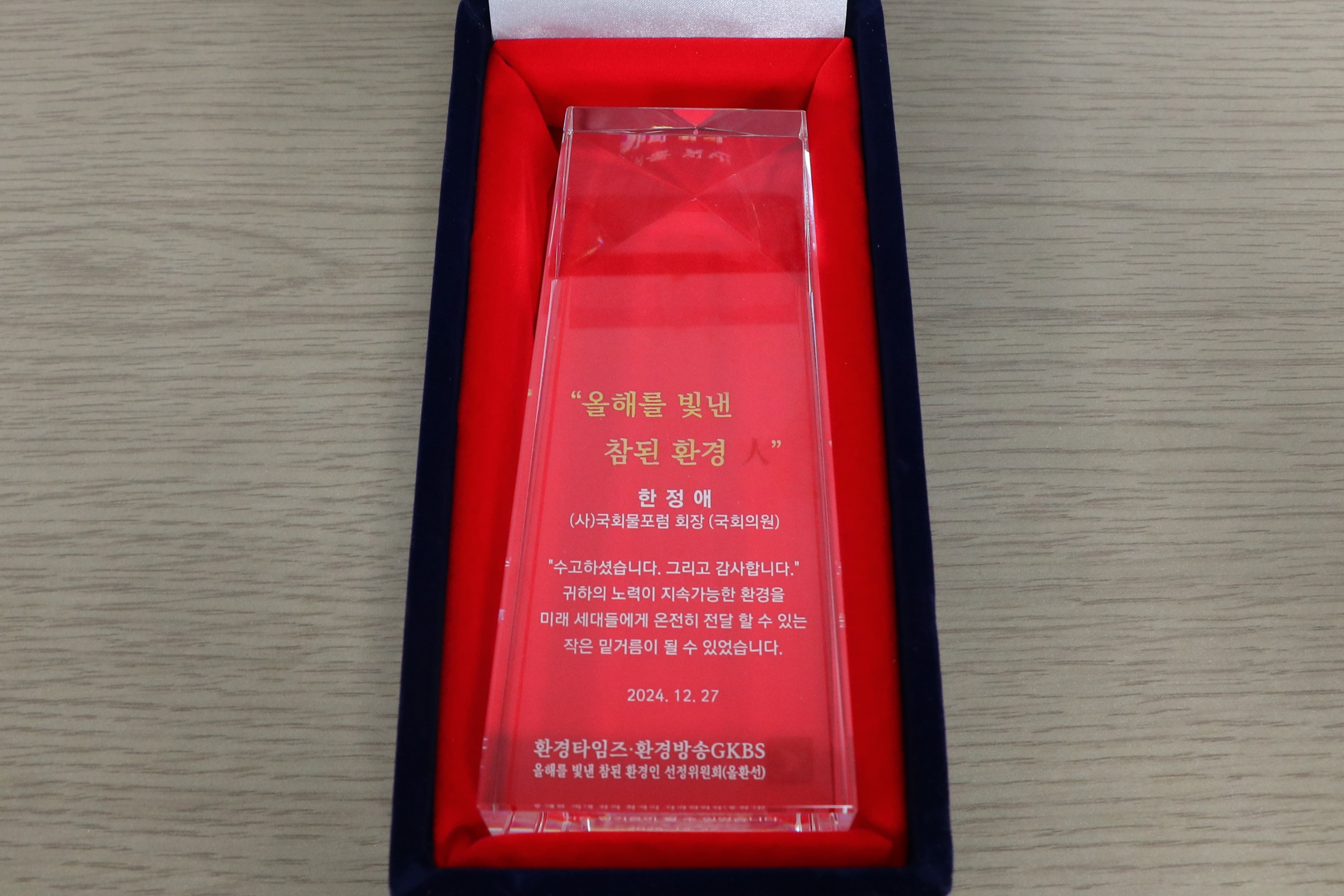국회물포럼 회장으로서의 활동을 인정받아 ‘올해를 빛낸 참된 환경 人’상을 수상했습니다.