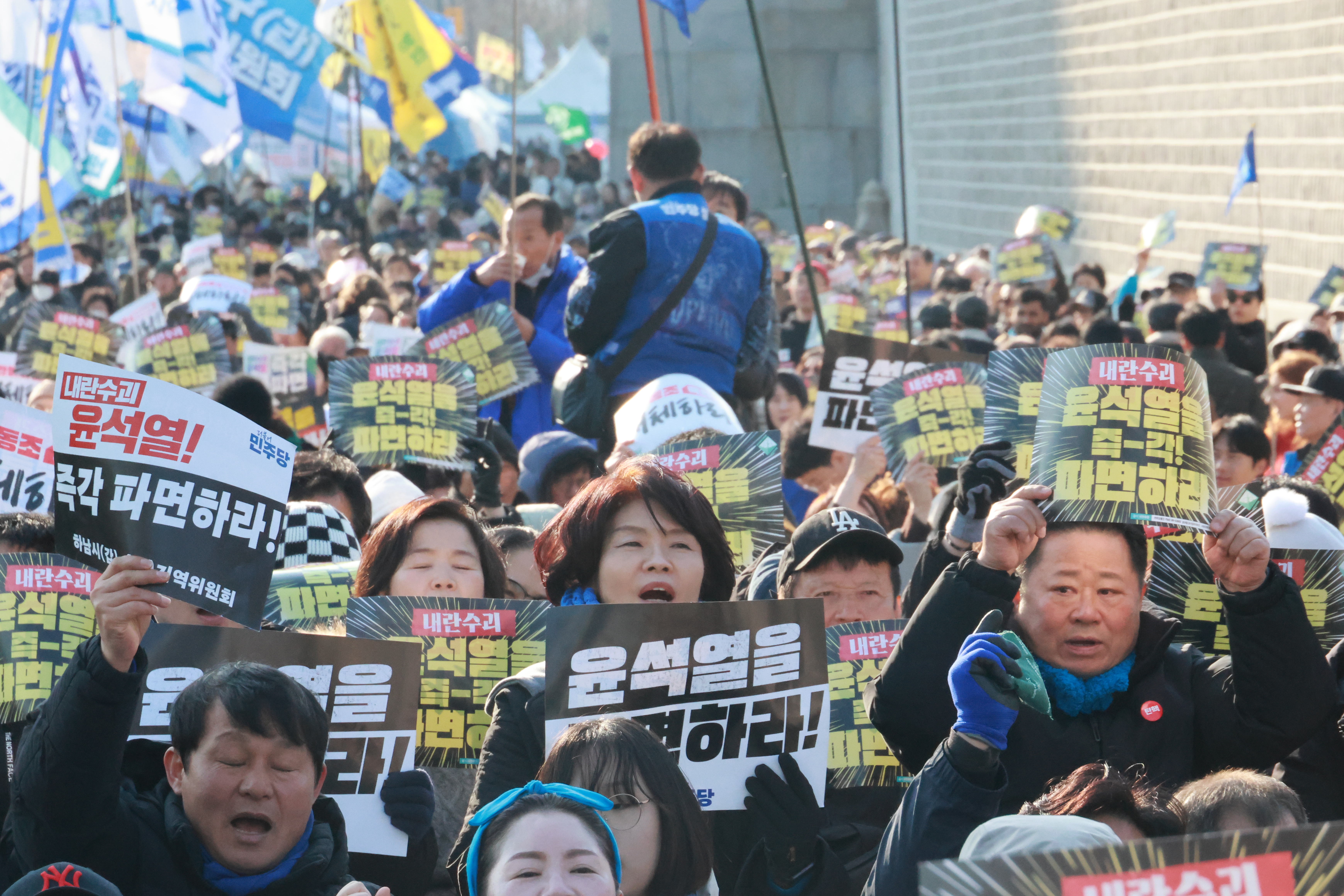 이어진 광화문 집회에서는 갑작스레 추워진 날씨에도 불구하고 많은 인파가 모여 '윤석열 파면'을 함께 외쳤습니다. 깃발과 함성이 만들어내는 거대한 물결을 바라보며, 민주주의를 지키기 위해 광장에 모인 국민 여러분이 진심으로 자랑스러웠습니다.