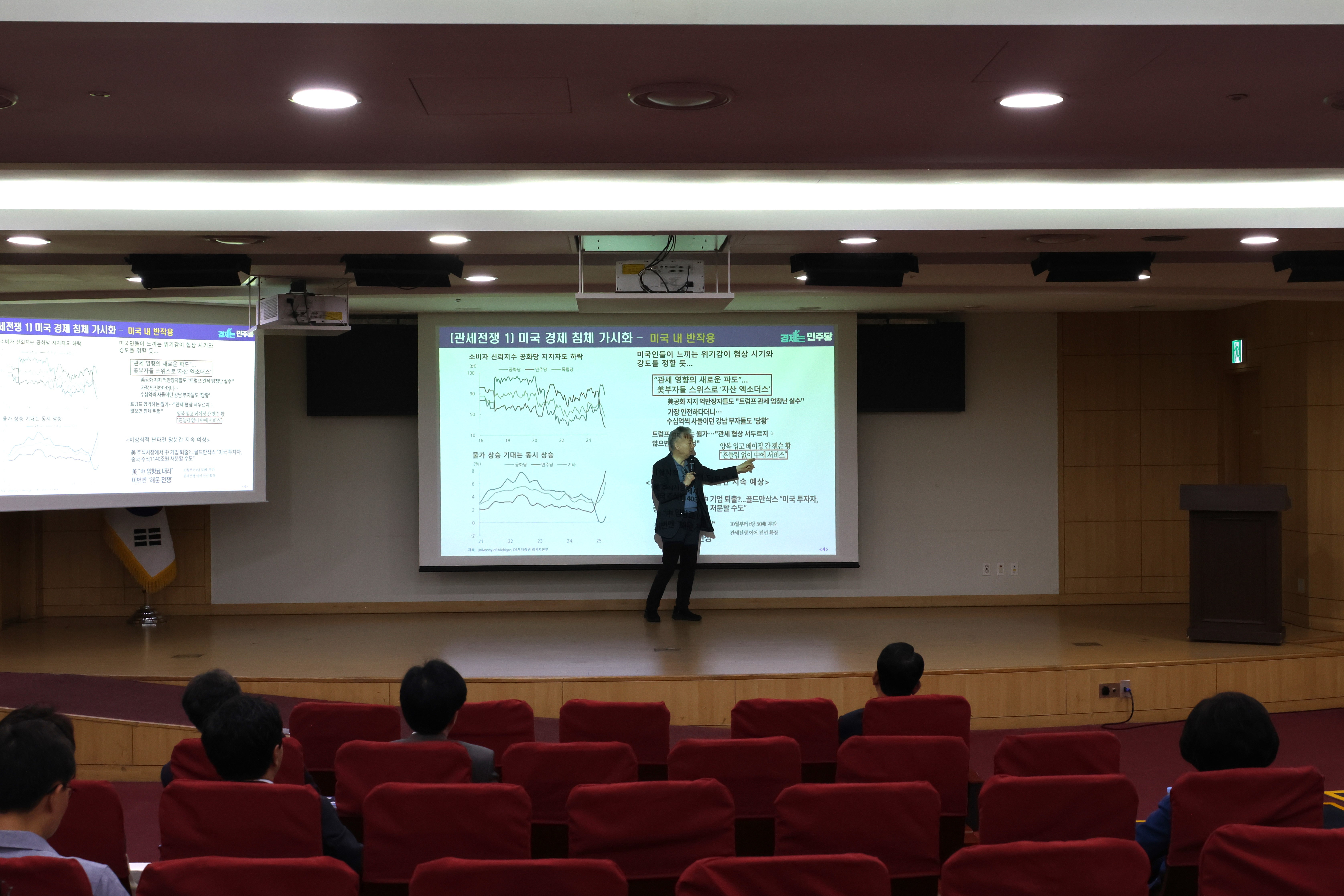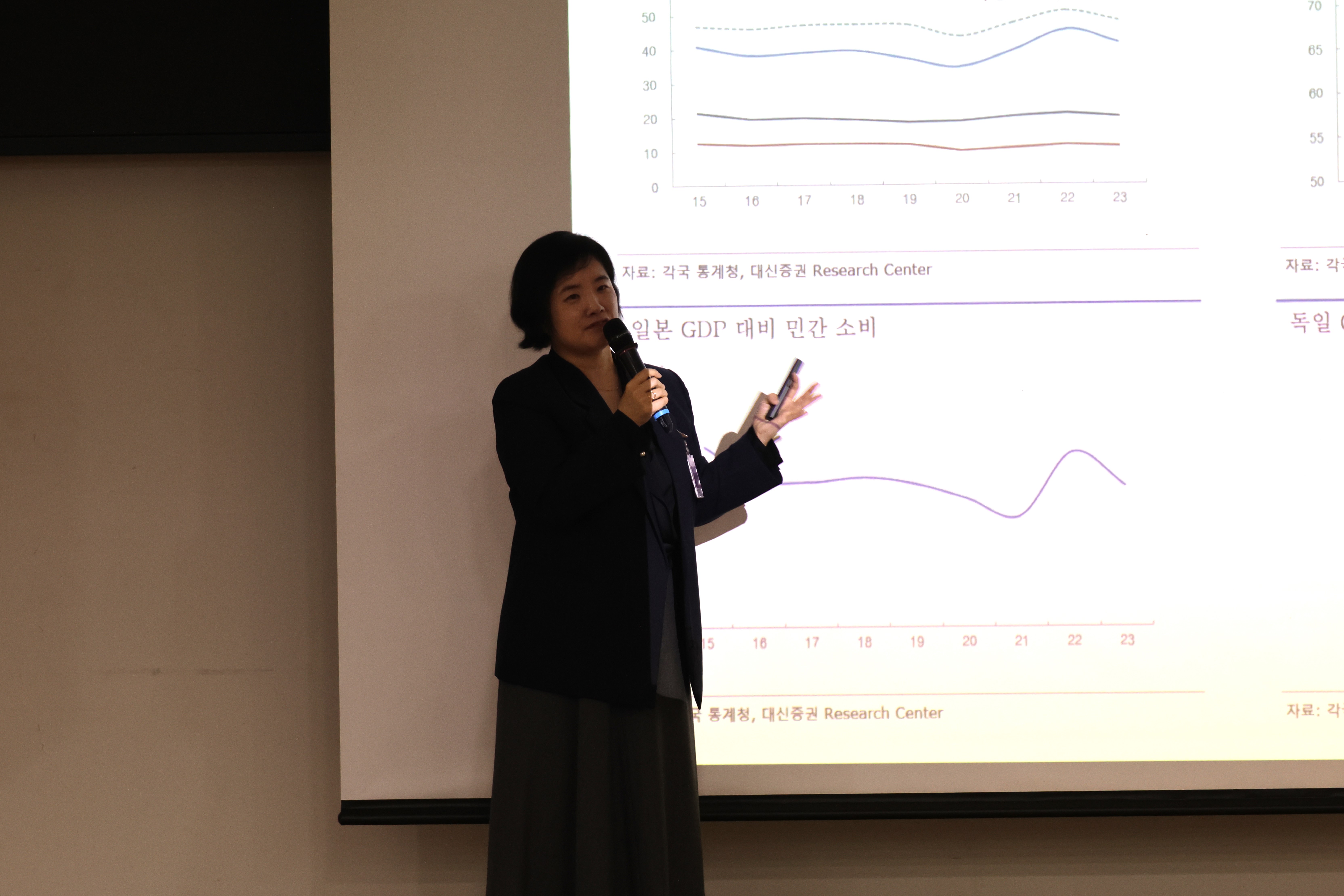 이어진 강의에서는 유정현 대신증권 연구위원께서 '성장의 한계에 부딪힌 내수'라는 주제로 트럼프 2기 출범에 따른 통상 마찰 등에 따른 한국 수출 증가율과 소비심리의 변화를 분석해주셨습니다.