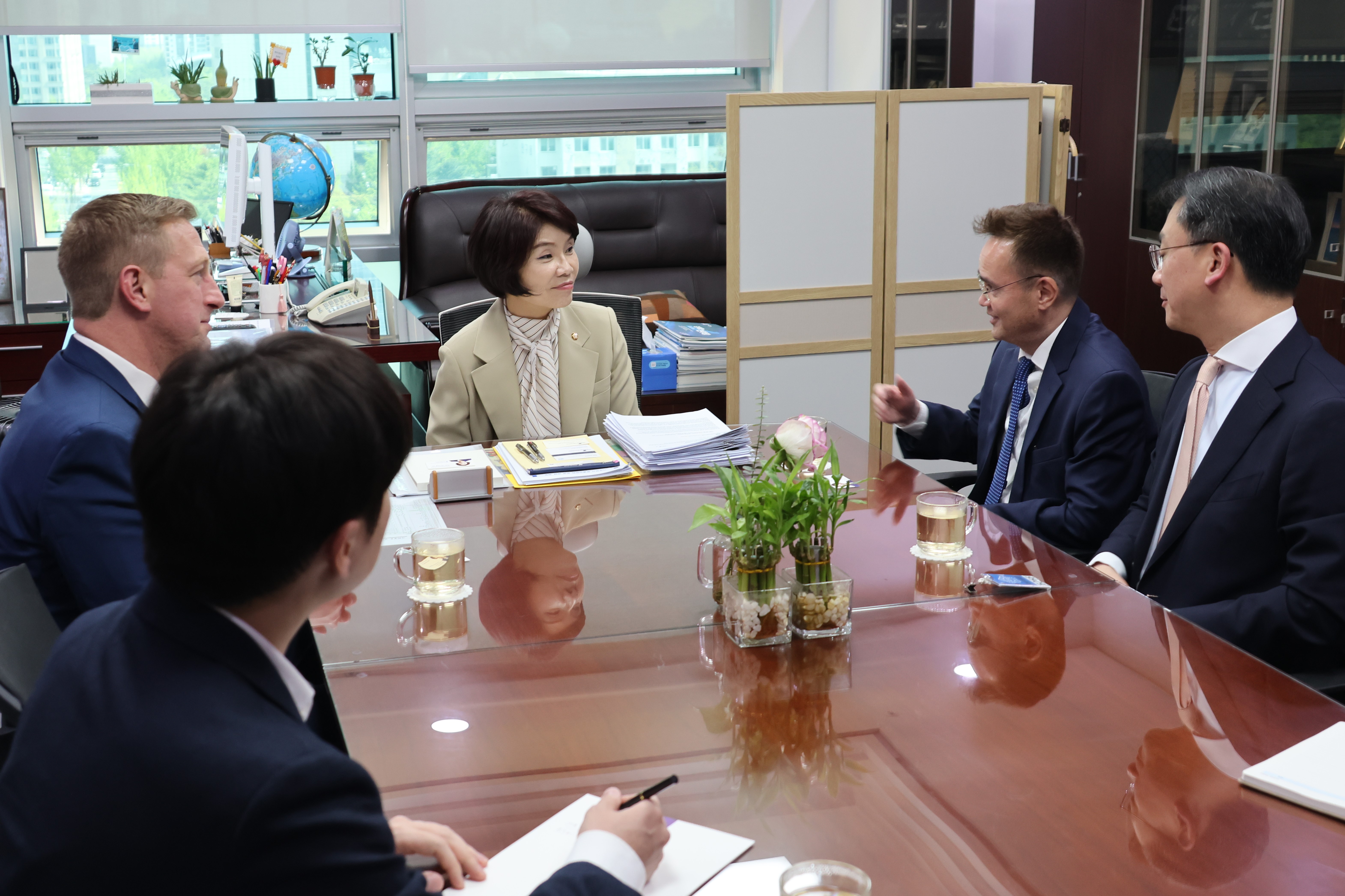 24일(목) 오후, 의원실로 내방한 릭 혼츠 CIPE(국제민간기업센터) 책임투자센터 소장, 앤서니 킴 헤리티지재단 연구원, 나일 가드너 헤리티지재단 소속 마거릿대처 자유센터장을 면담했습니다.