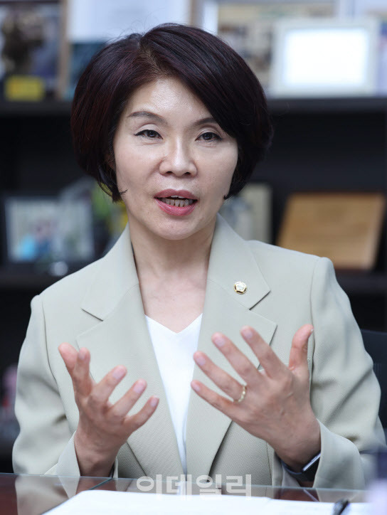 더불어민주당 선대위 직장인월급방위대 위원장인 한정애 의원이 지난 9일 국회 의원회관에서 이데일리와 인터뷰를 하고 있다. (사진=노진환 기자)