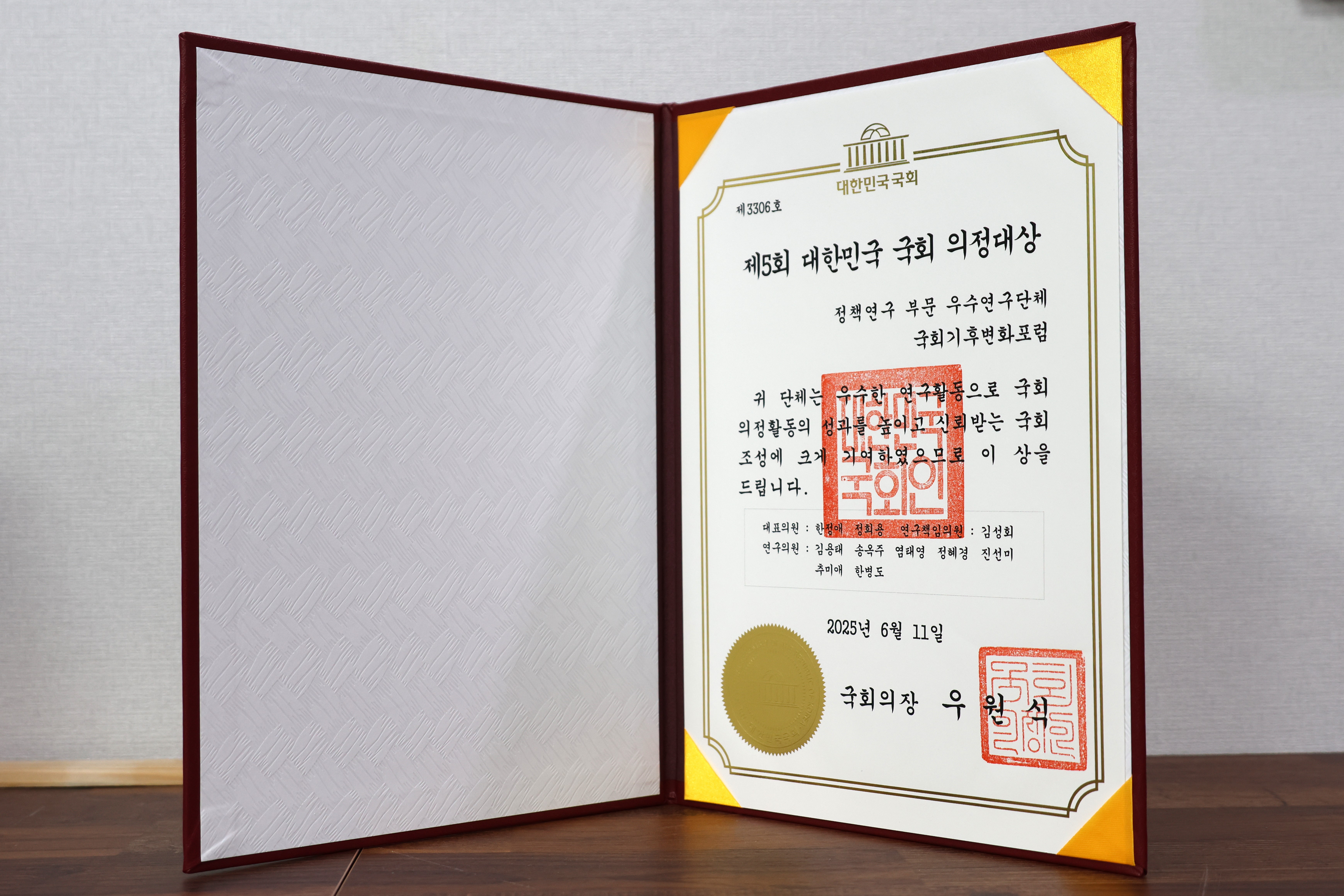 제가 대표로 있는 의원연구단체 ‘국회기후변화포럼’이 활발한 연구 활동을 인정받아 ‘정책연구 부문’ 우수의원으로 선정됐습니다.
