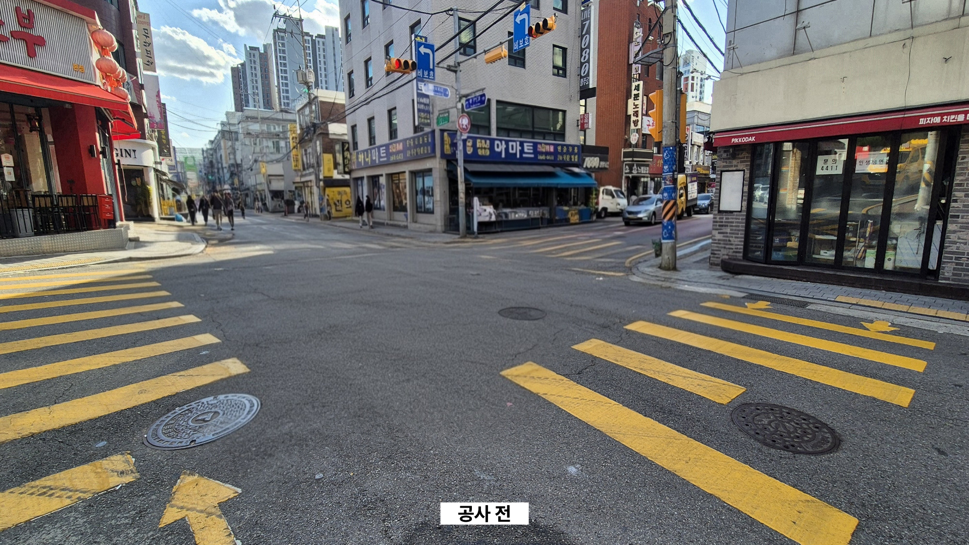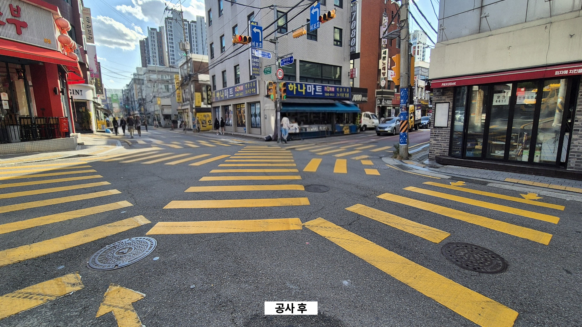 주민들과 등서초등학교 학생들이 자주 이용하는 화곡로58길 사거리에 안전한 통행을 위해 대각선 횡단보도를 설치하였습니다