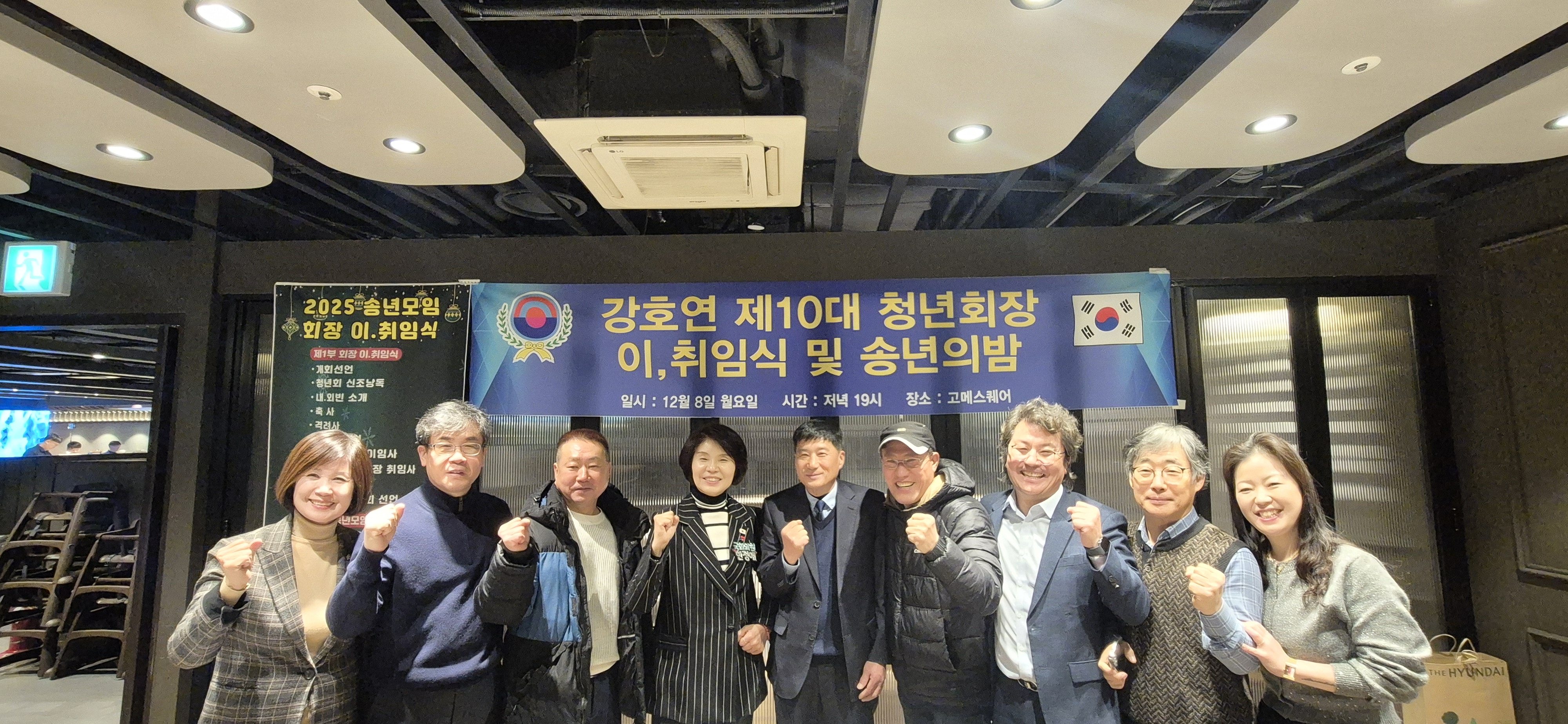 이어 강호연 제10대 청년회장 이취임식 및 송년의밤 모임에 참석했습니다. 그동안 애써주신 정태경 회장님~ 고생 많으셨고 앞으로 강호연 청년회를 이끌어주실 최성래 회장님 열심히 해주시길 바랍니다~! 강호연 청년회 화이팅!!