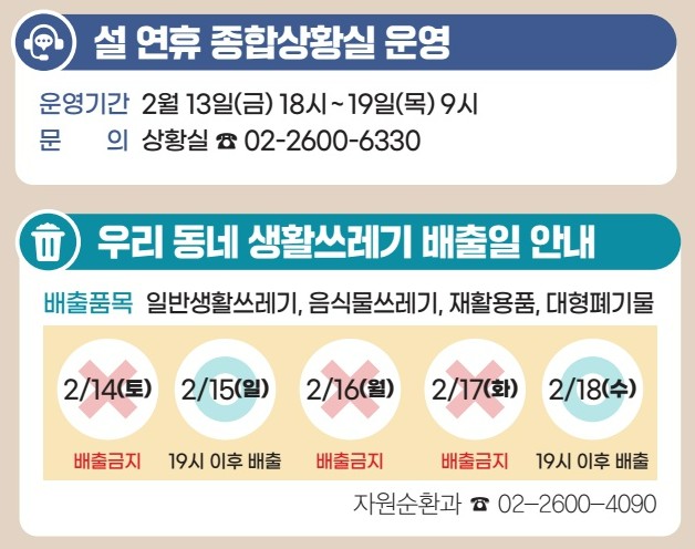 [강서소식] 설 연휴 종합상황실 운영 및 우리 동네 생활쓰레기 배출일 안내