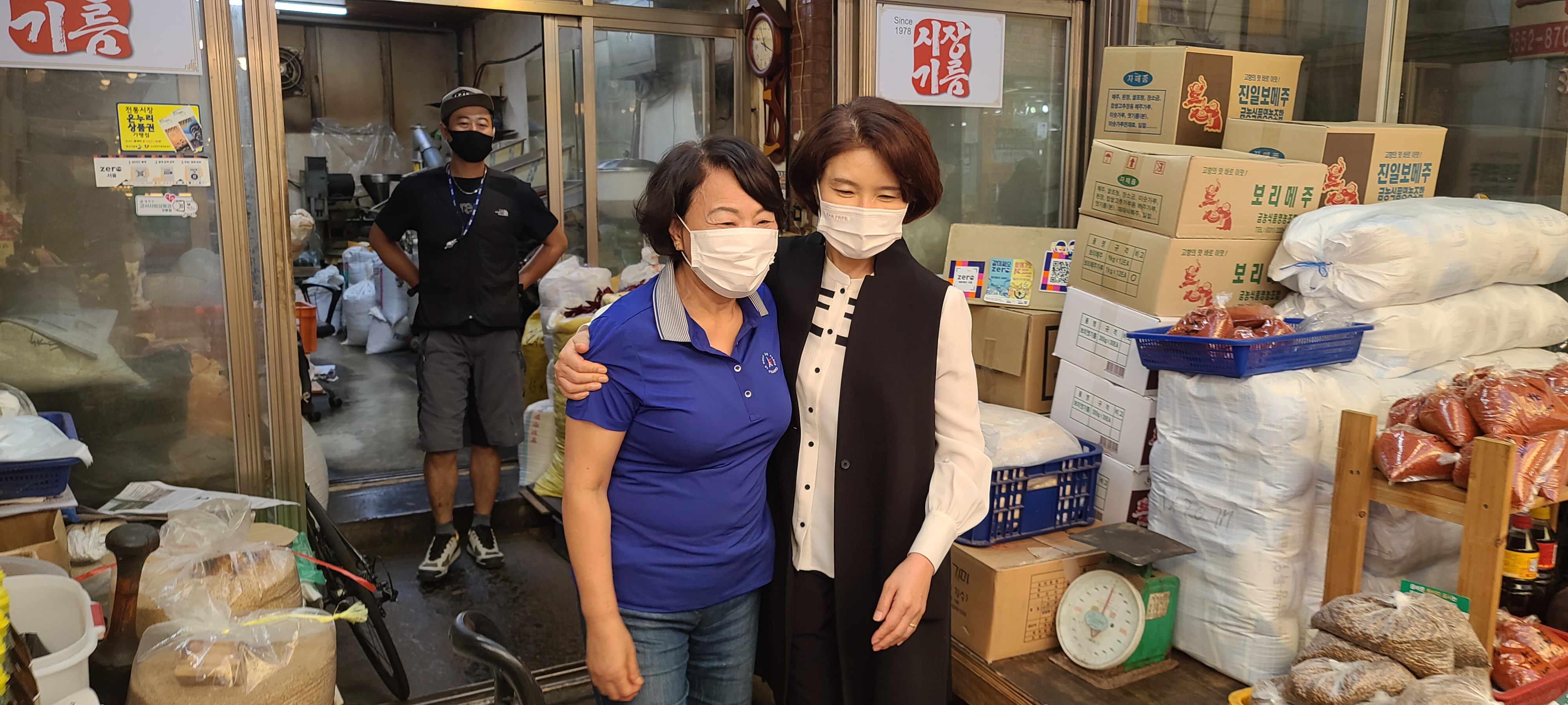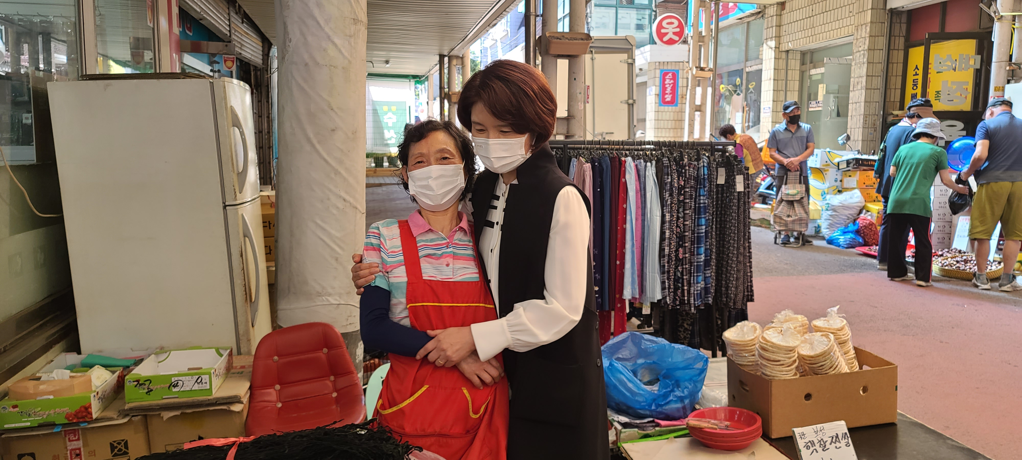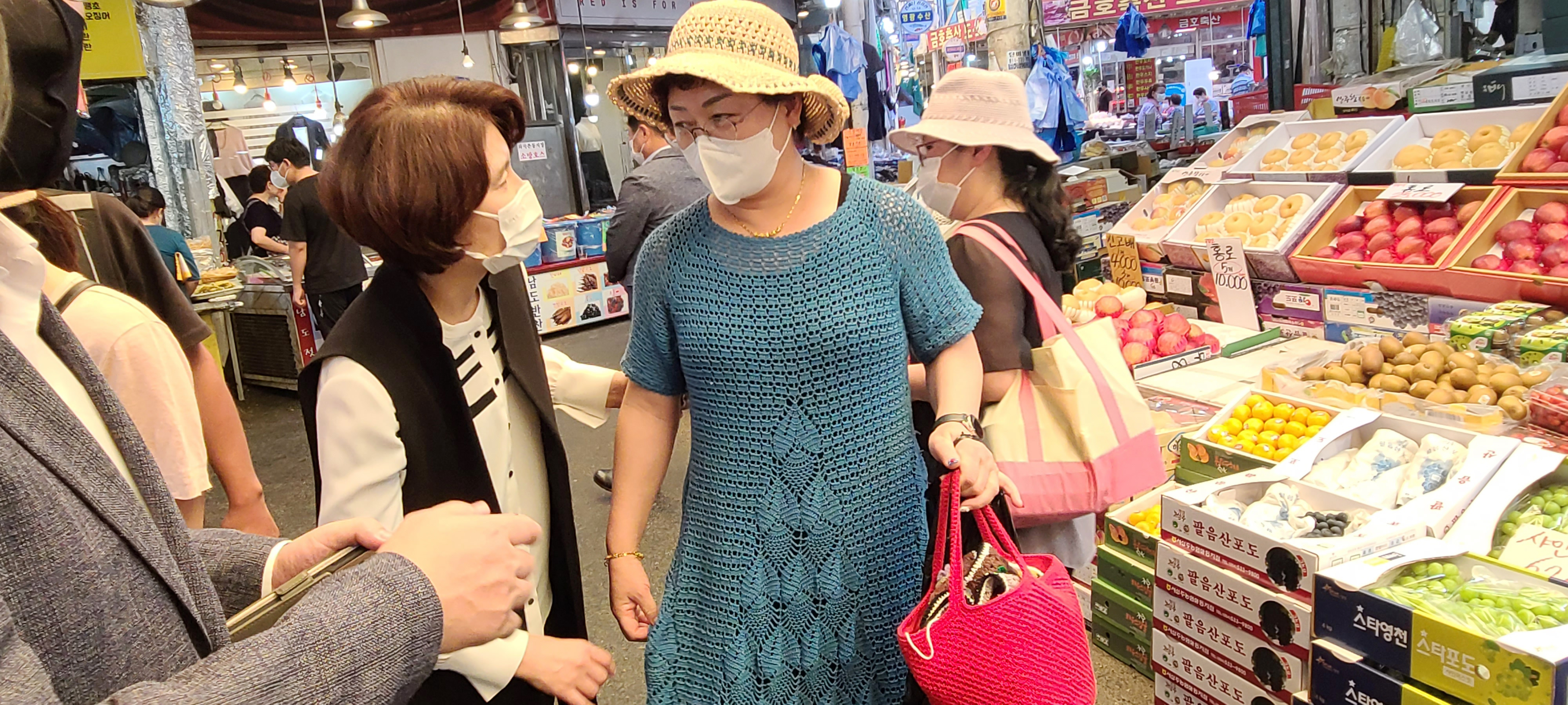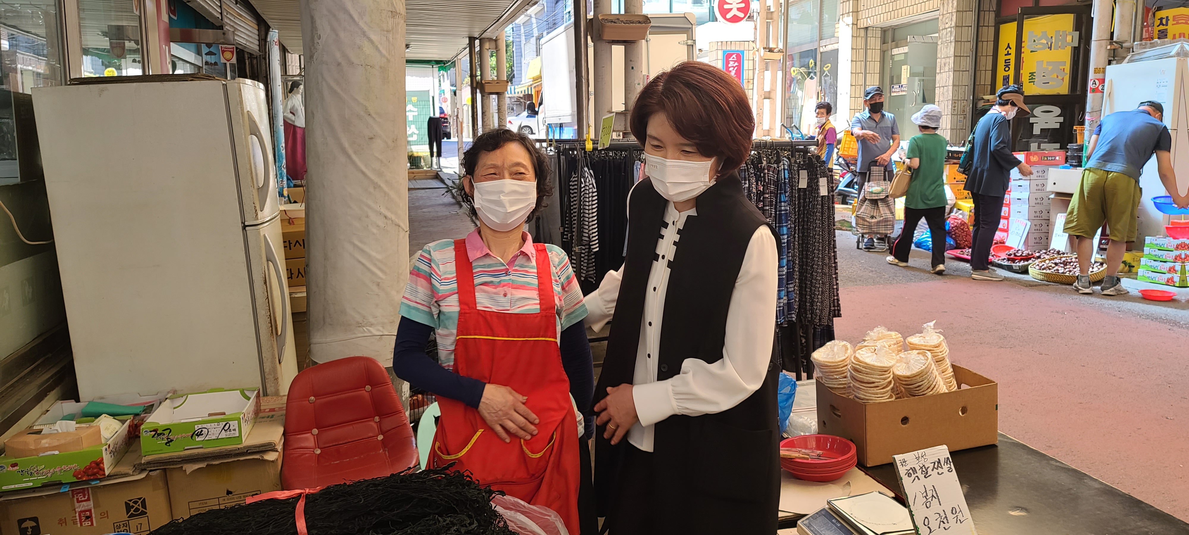 우리 동네 시장에서는 방역도 꼼꼼히, 마스크도 꼭 착용하고 계시는 만큼