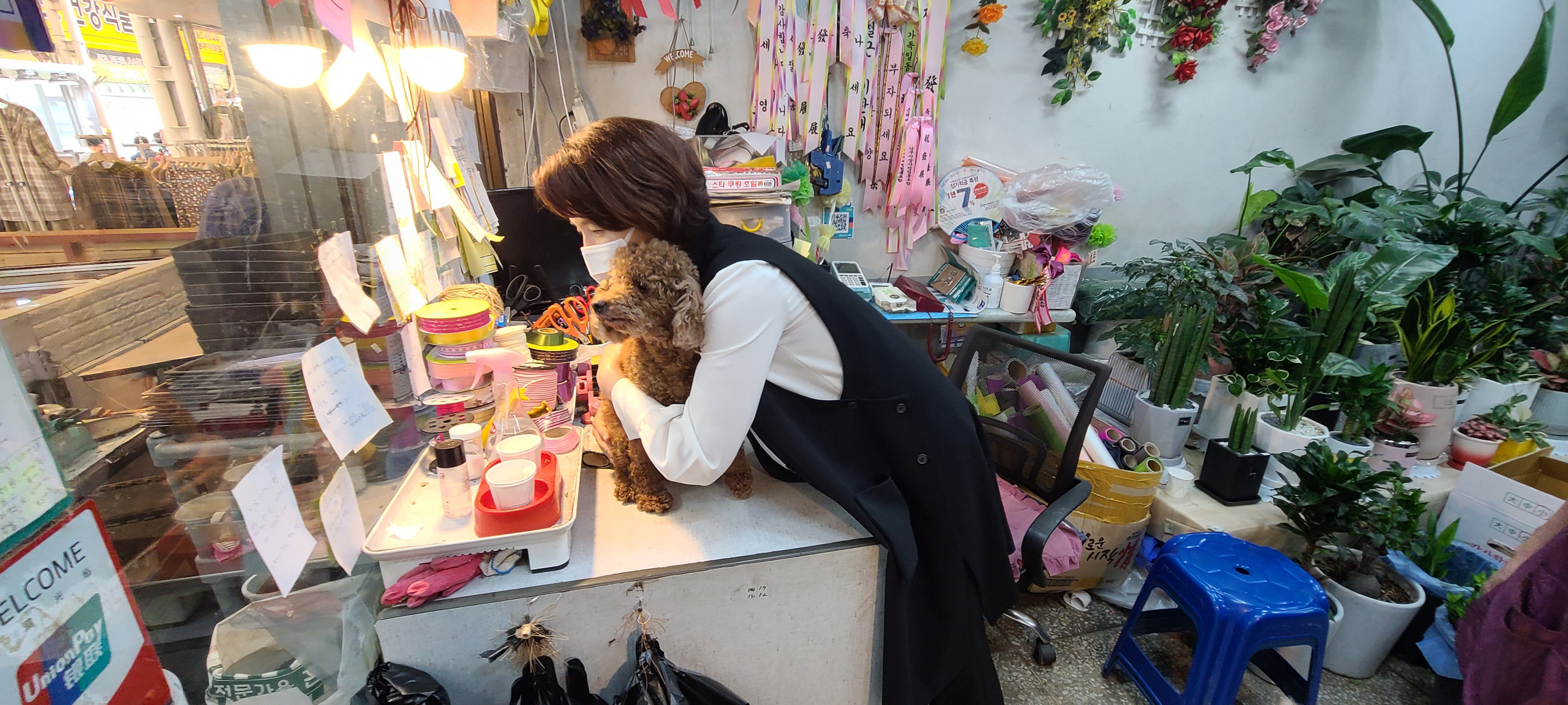 꽃집 책상에 자리잡은 우리 댕댕이도 안녕~~