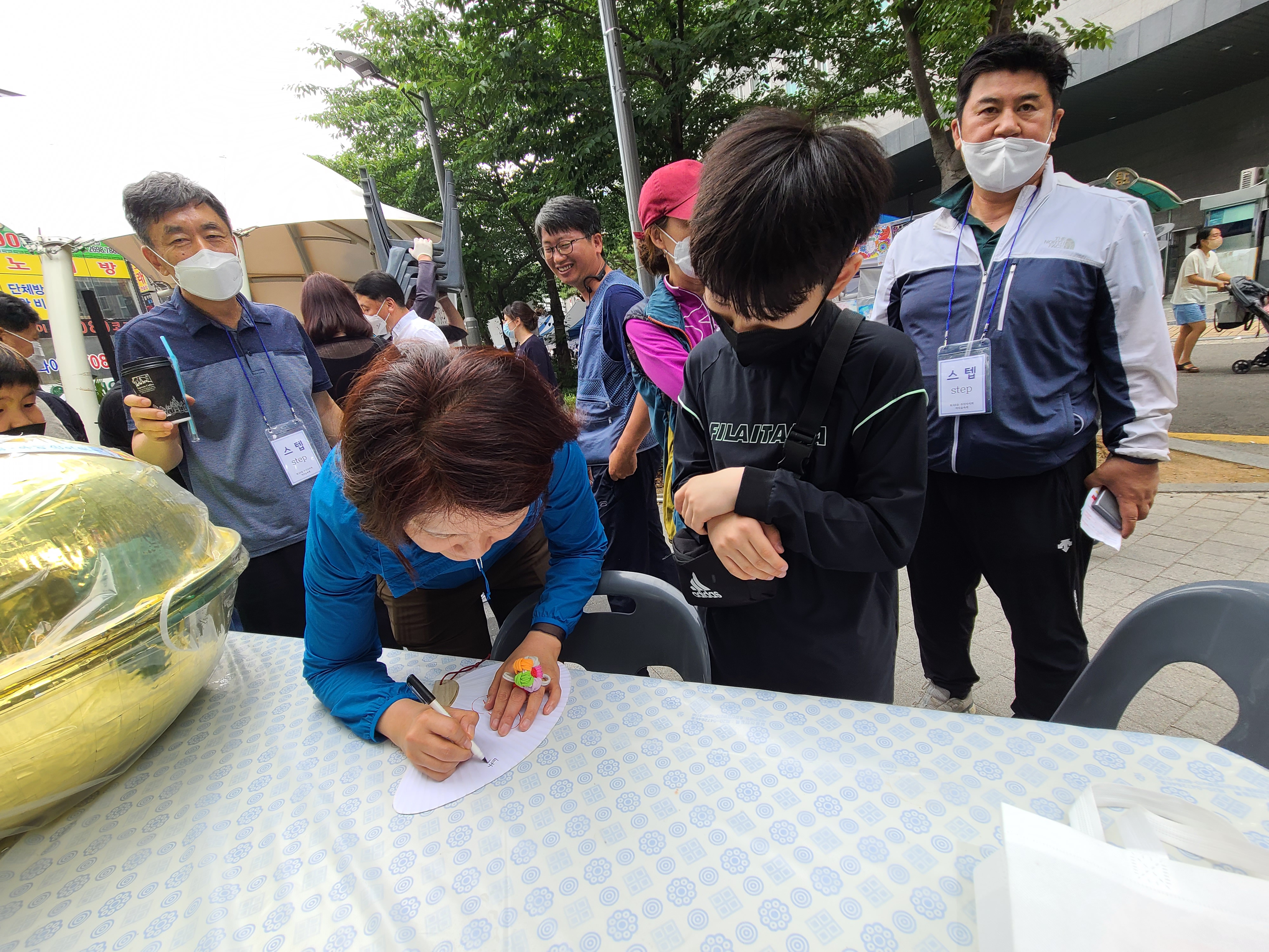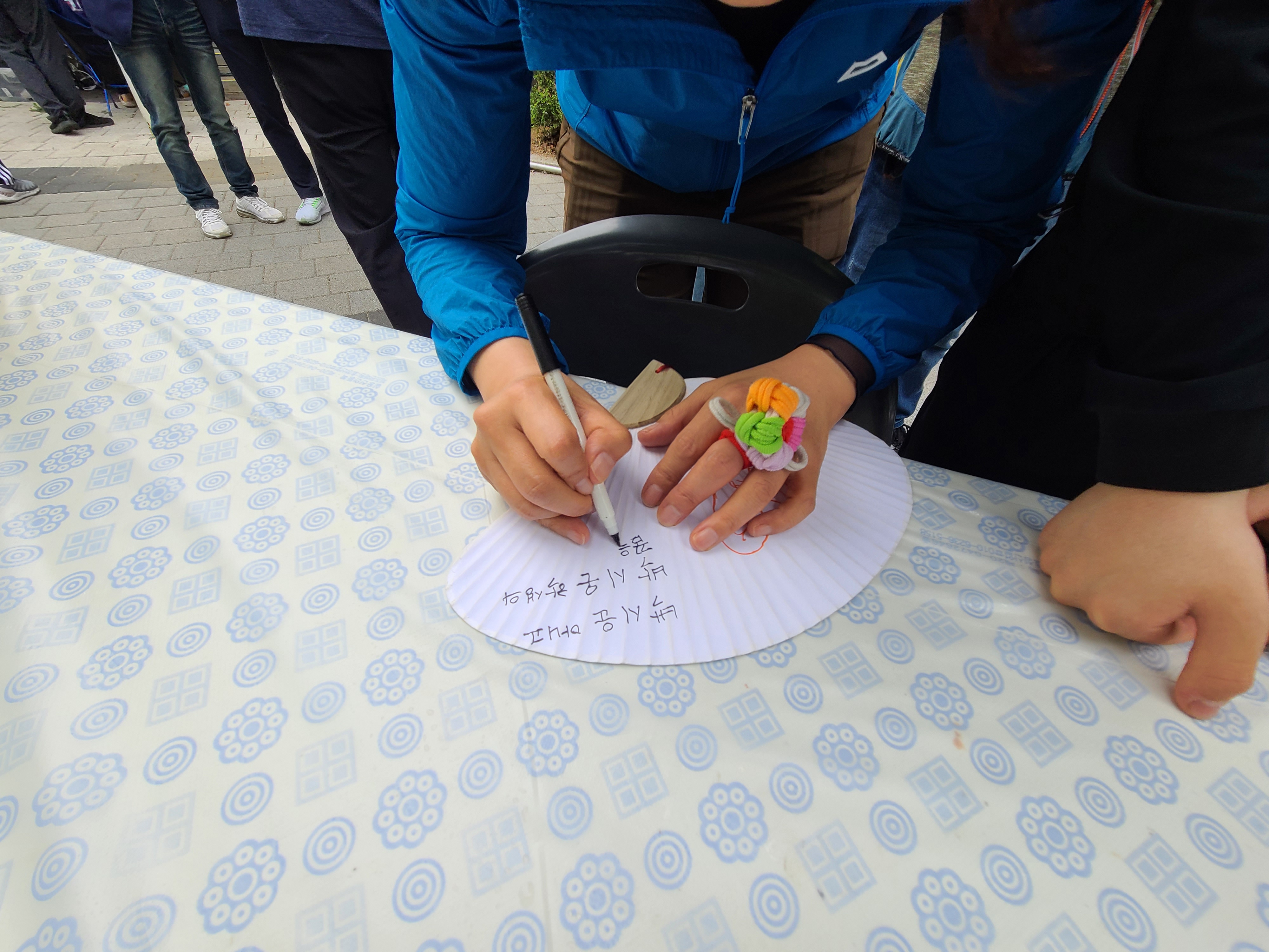 부채 꾸미기 부스에서 사인을 요청했던 한 학생