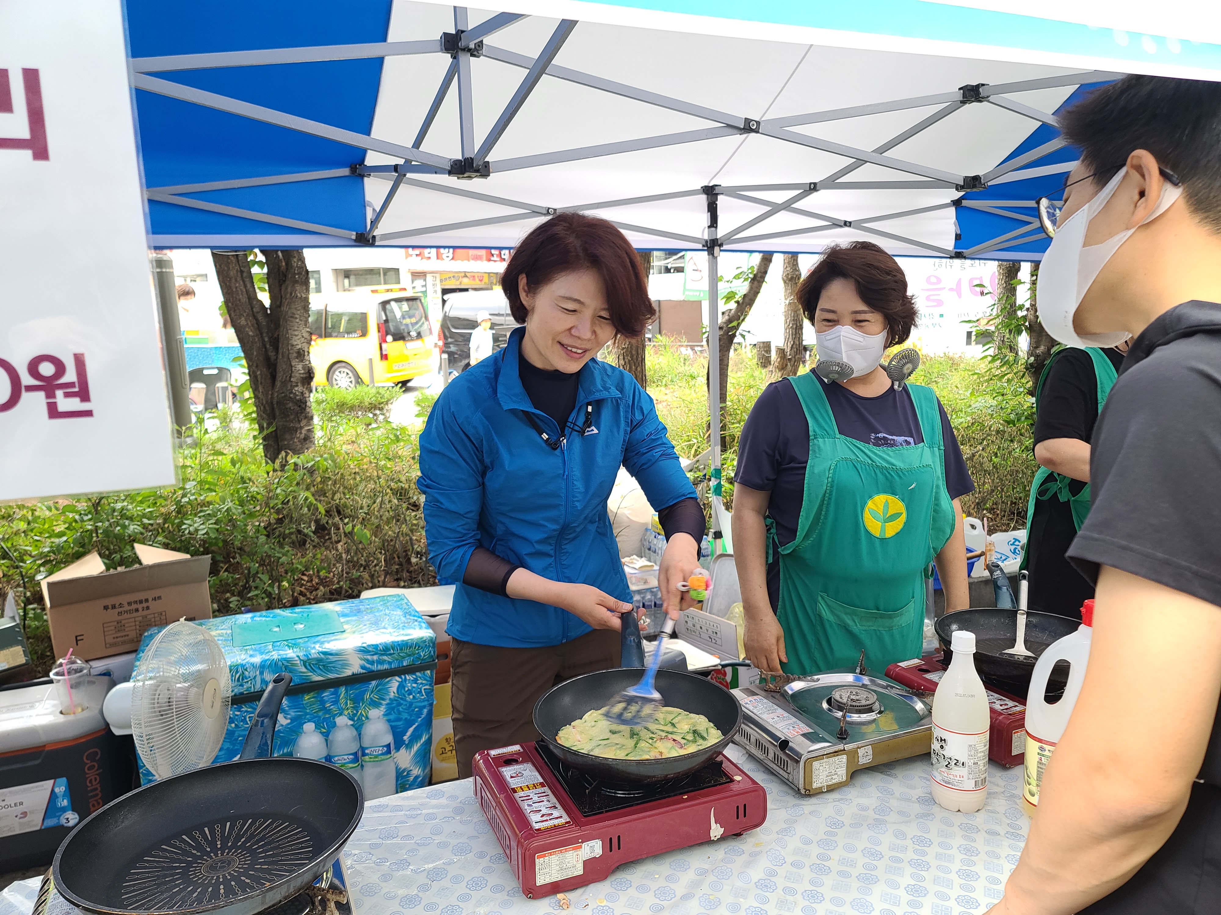 축제하면 부침개가 빠질 수 없죠~ 두팔 걷어붙이고 맛있는 부침개를 만드는 한정애 의원!