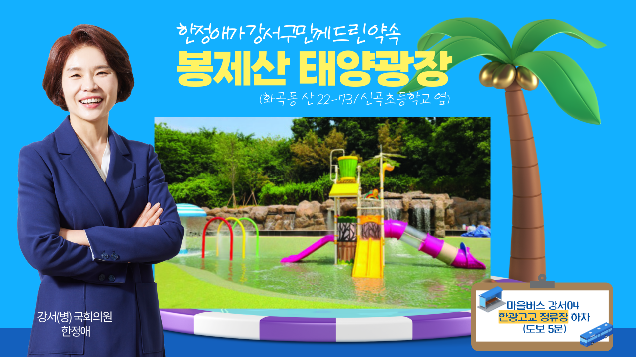 제21대 총선 공약으로 기존의 노후된 태양광장과 어린이놀이터 시설을 전면 개선하여 온 가족이 즐길 수 있는 물놀이공간으로 탈바꿈시키겠다고 밝힌 바 있었는데요.