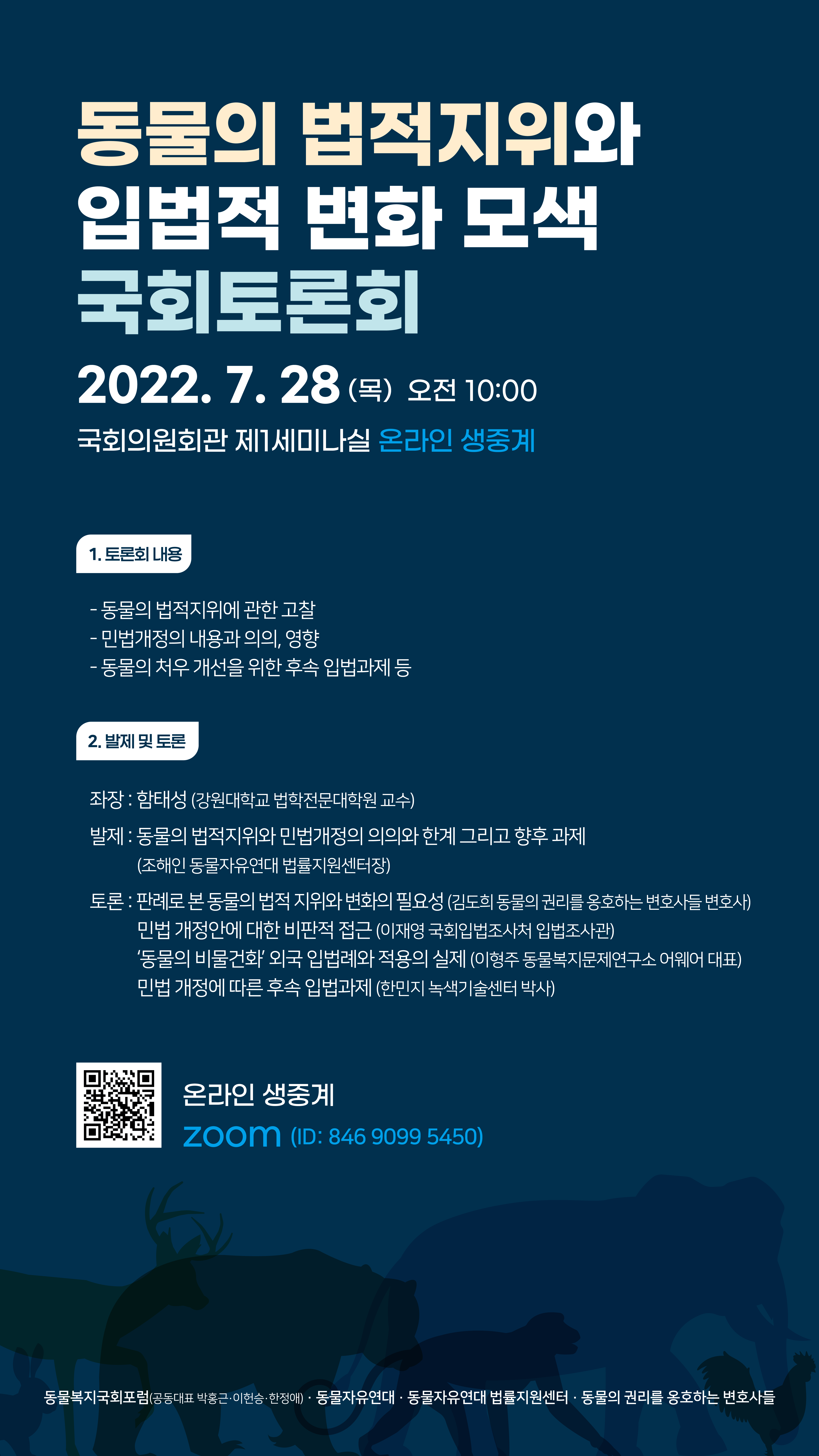 ❍ 주최 : 동물복지국회포럼, 동물자유연대, 동물자유연대 법률지원센터, 동물의 권리를 옹호하는 변호사들