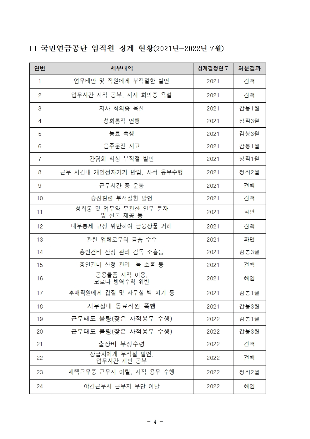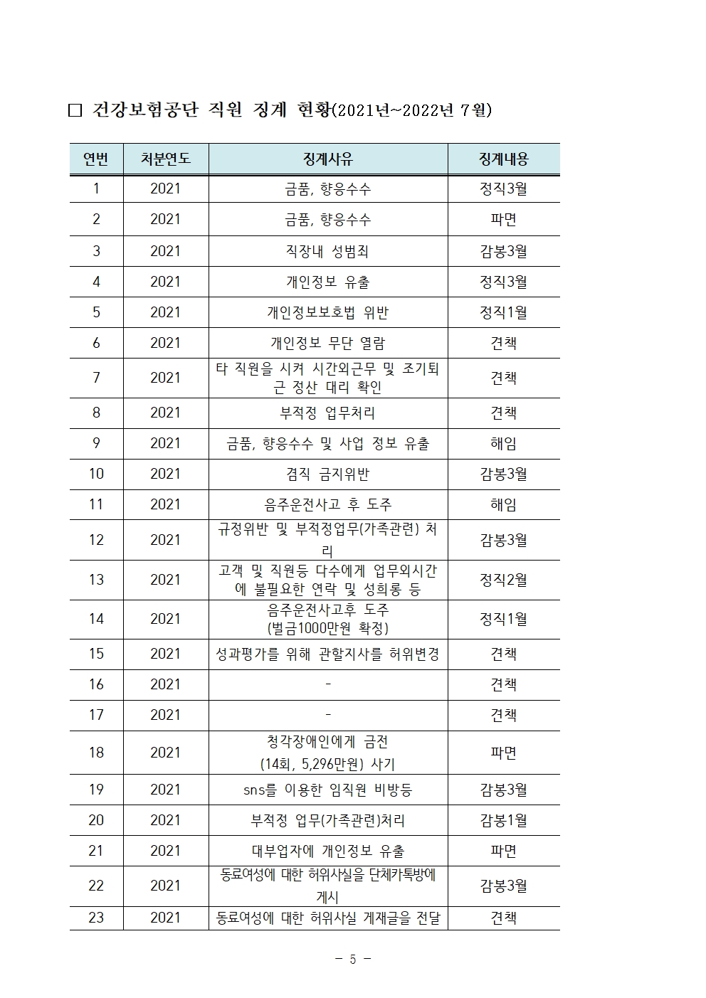 [보도자료] 보건복지부 산하기관 직장 내 성범죄, 개인정보 유출 등 도덕적 해이 심각해