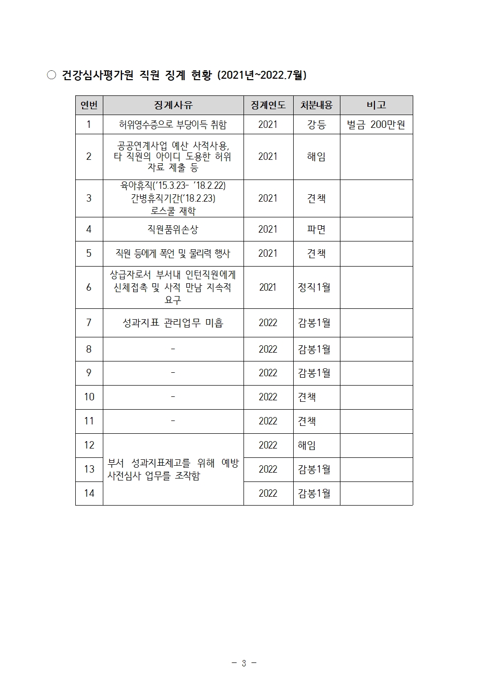 더불어민주당 한정애 국회의원(서울 강서병, 국회 보건복지위원회)이 보건복지부 산하 공공기관으로부터 제출받은 국정감사 자료, ‘직원 징계현황(’21년~ ‘22.7)’을 종합하면, 자료제출 10개 기관중 7개 기관에서 ‘직장내 성범죄’ 가 발생했고 올해에도 3건이나 발생한 기관도 있었다.