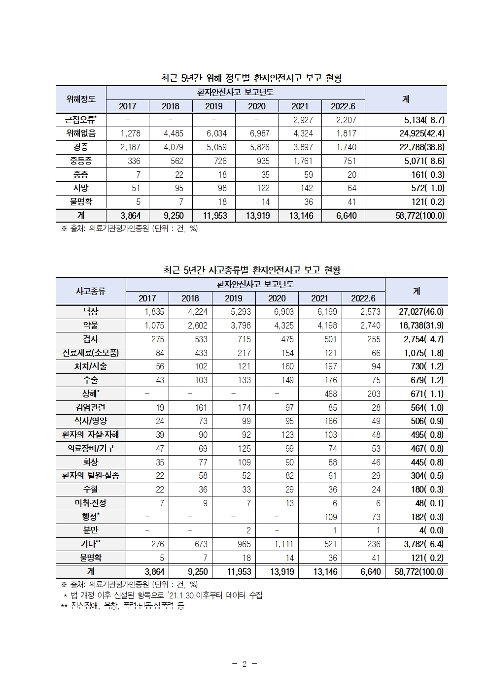 [보도자료] 환자안전사고, 작년 한 해 하루 평균 36건 발생!