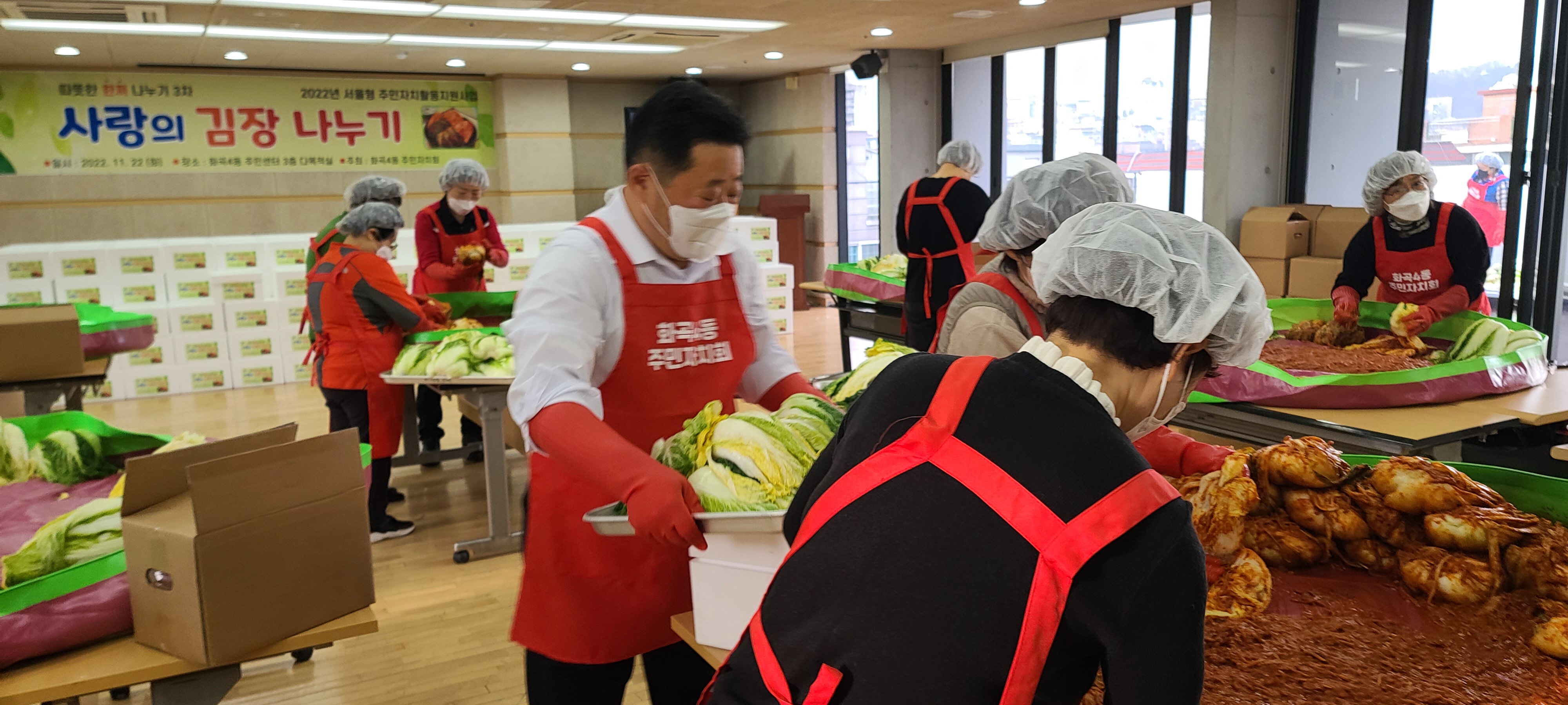 22일(화) 아침, 화곡4동 주민자치회의 주최로 진행된 김장 나눔 행사에 함께했습니다.