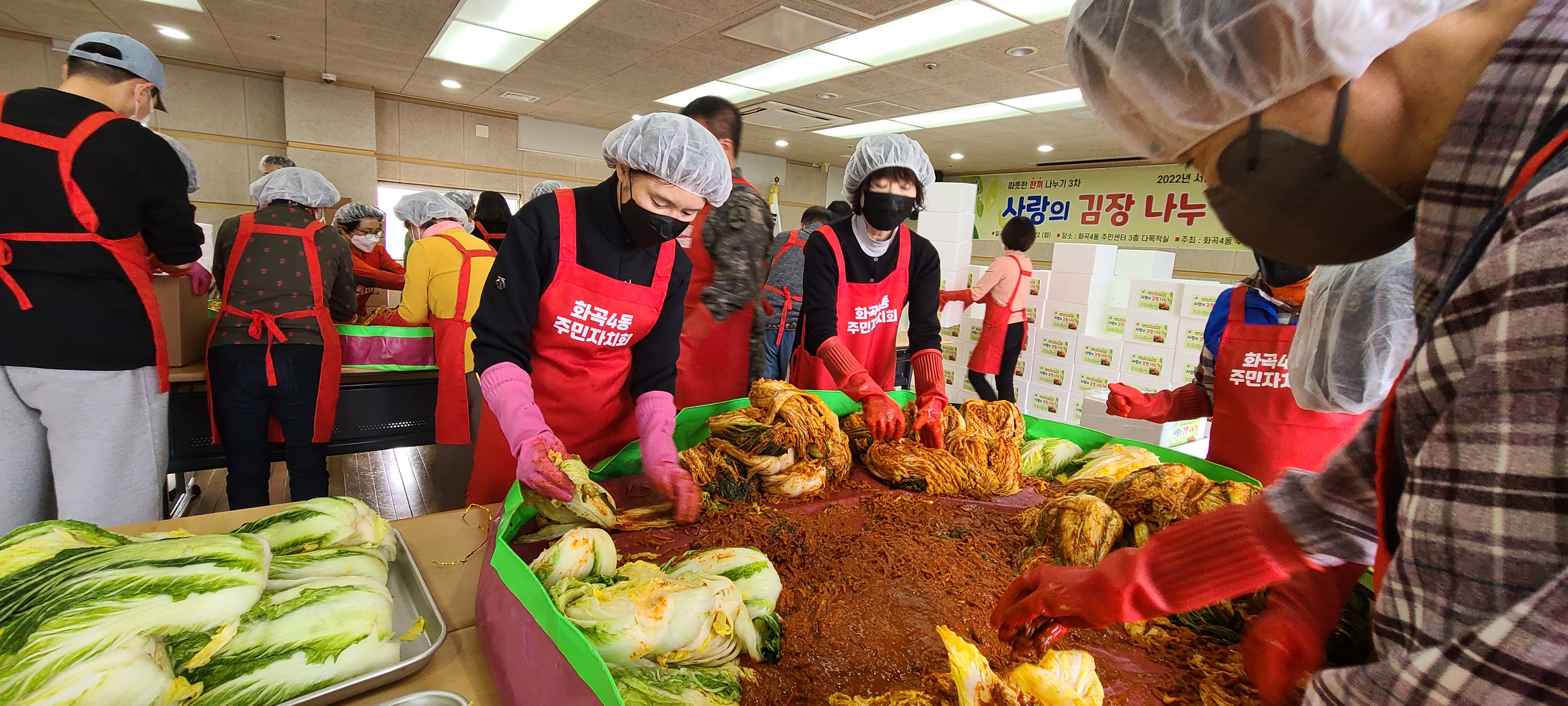 22일(화) 아침, 화곡4동 주민자치회의 주최로 진행된 김장 나눔 행사에 함께했습니다.