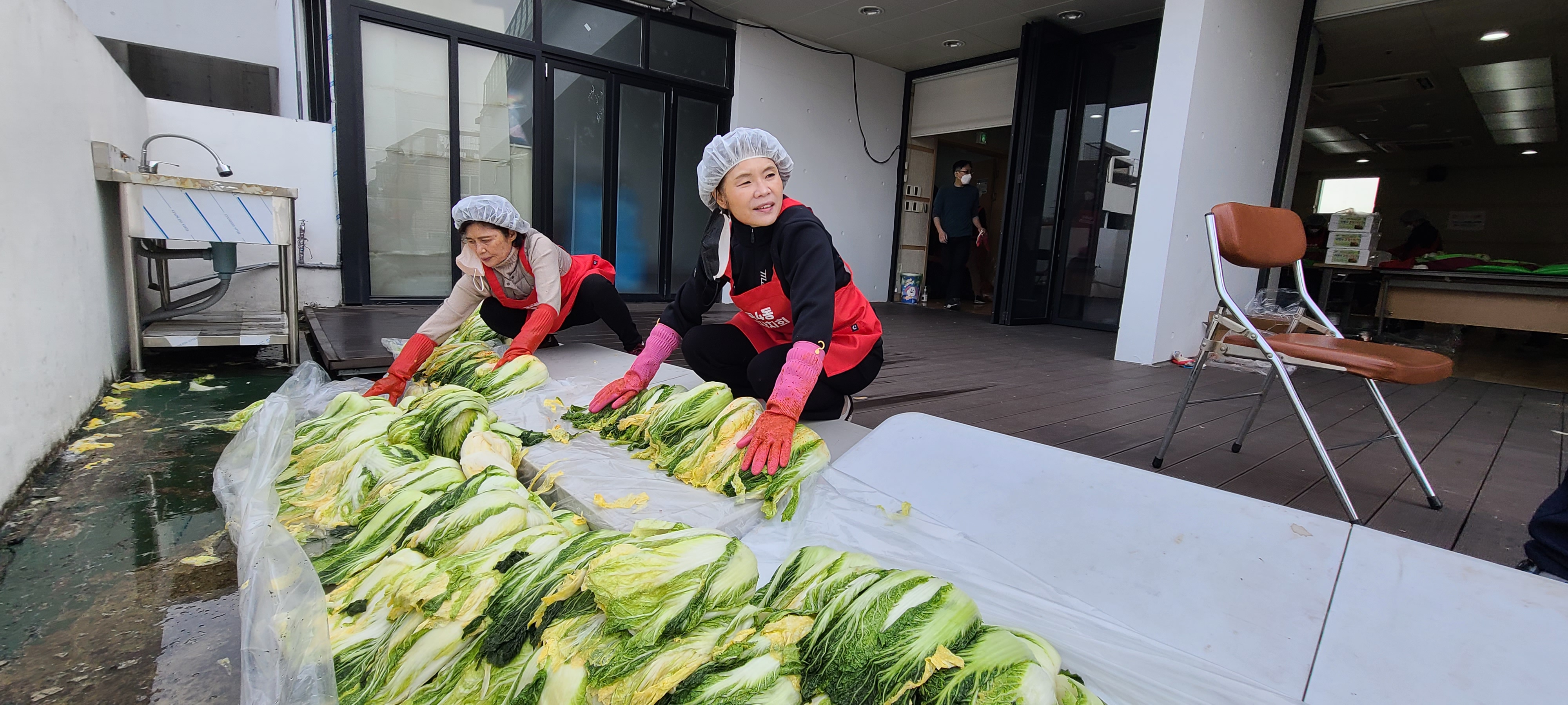 열심히 절인 배추를 나르시는 중입니다 :)