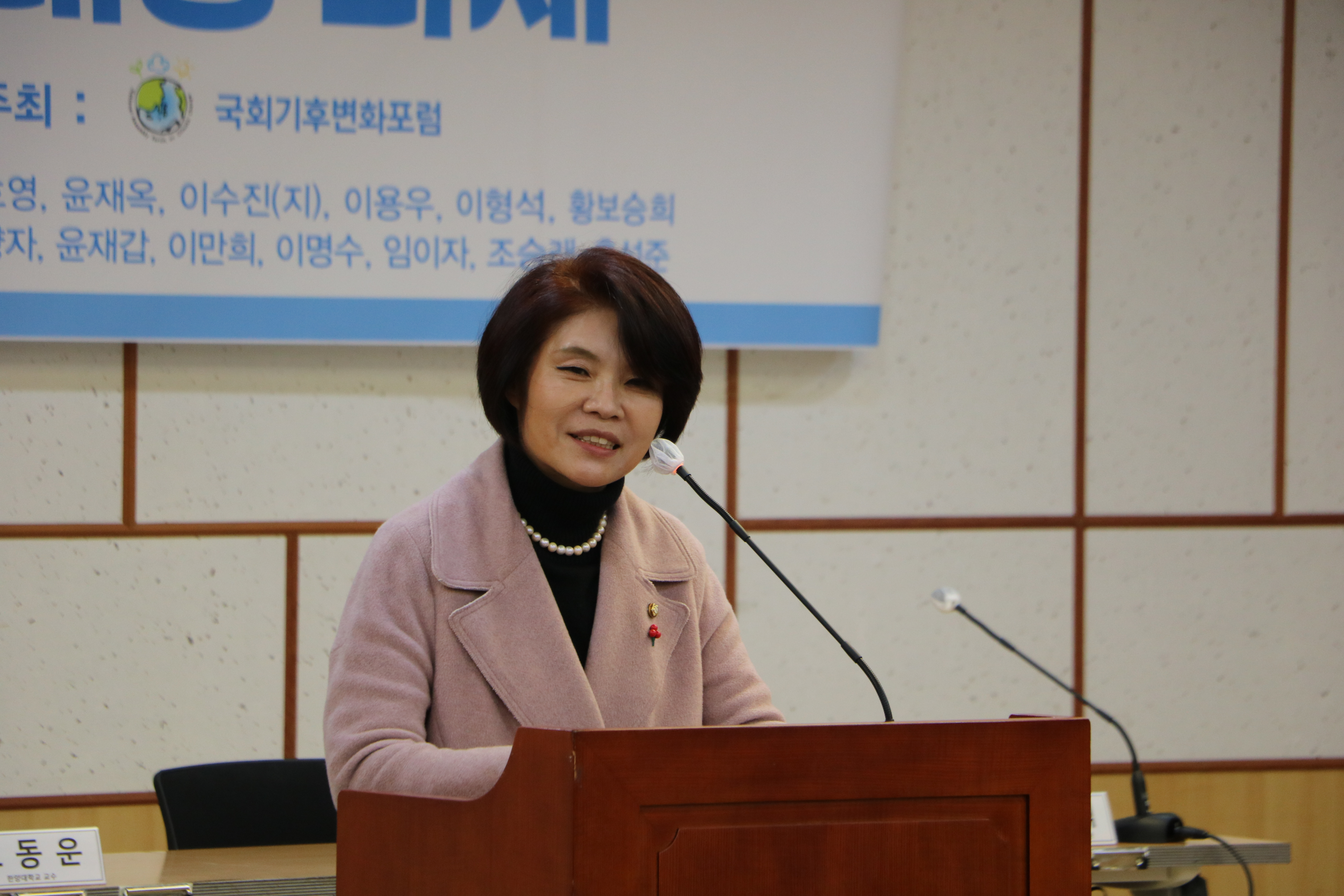 국민의례가 끝나고, 국회기후변화포럼 회원들이 준비한 연설문을 낭독하는 시간을 가졌습니다.