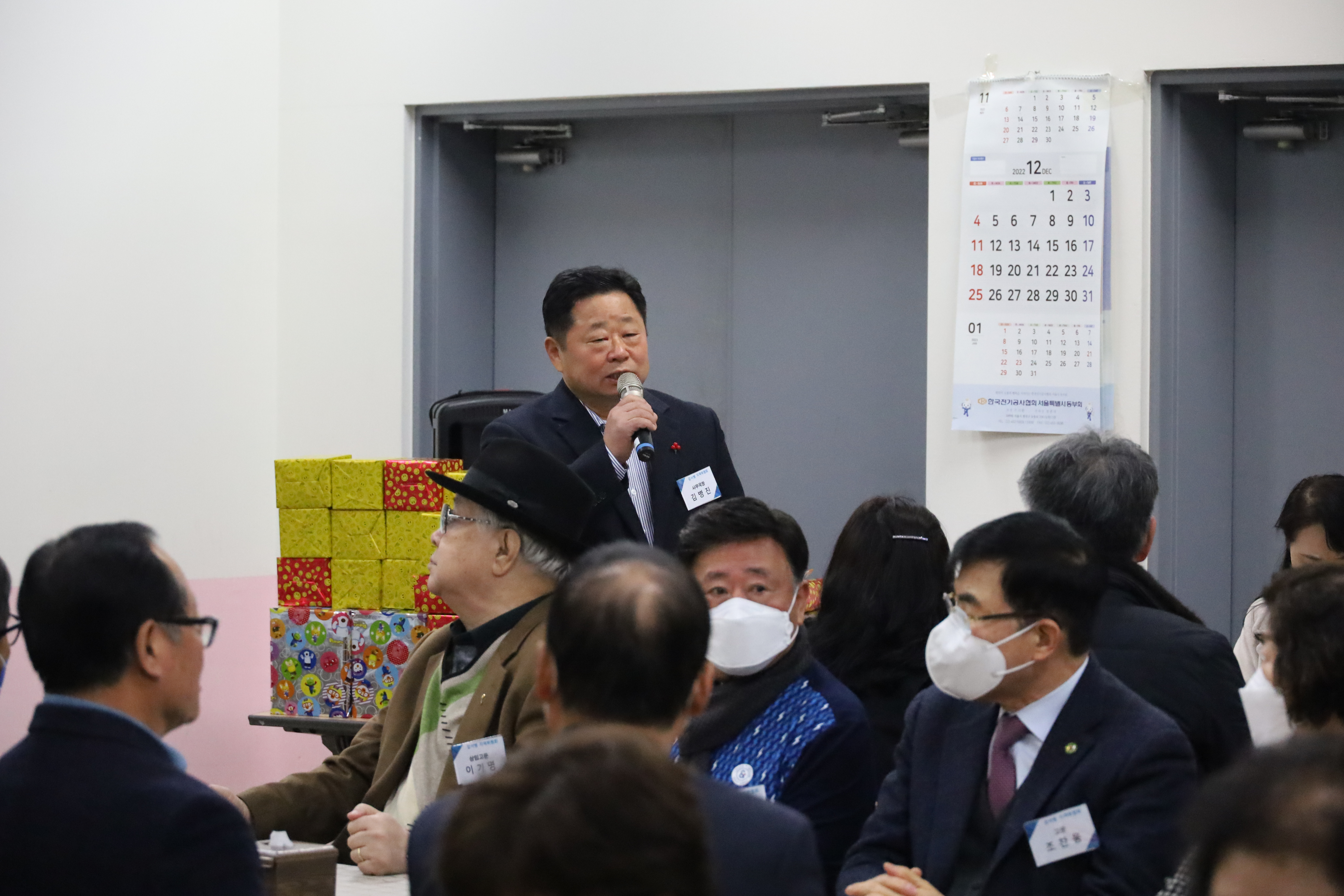 송년회의 사회자로서 행사의 분위기를 UP!업!시키시는 강서병 김병진 사무국장님~!