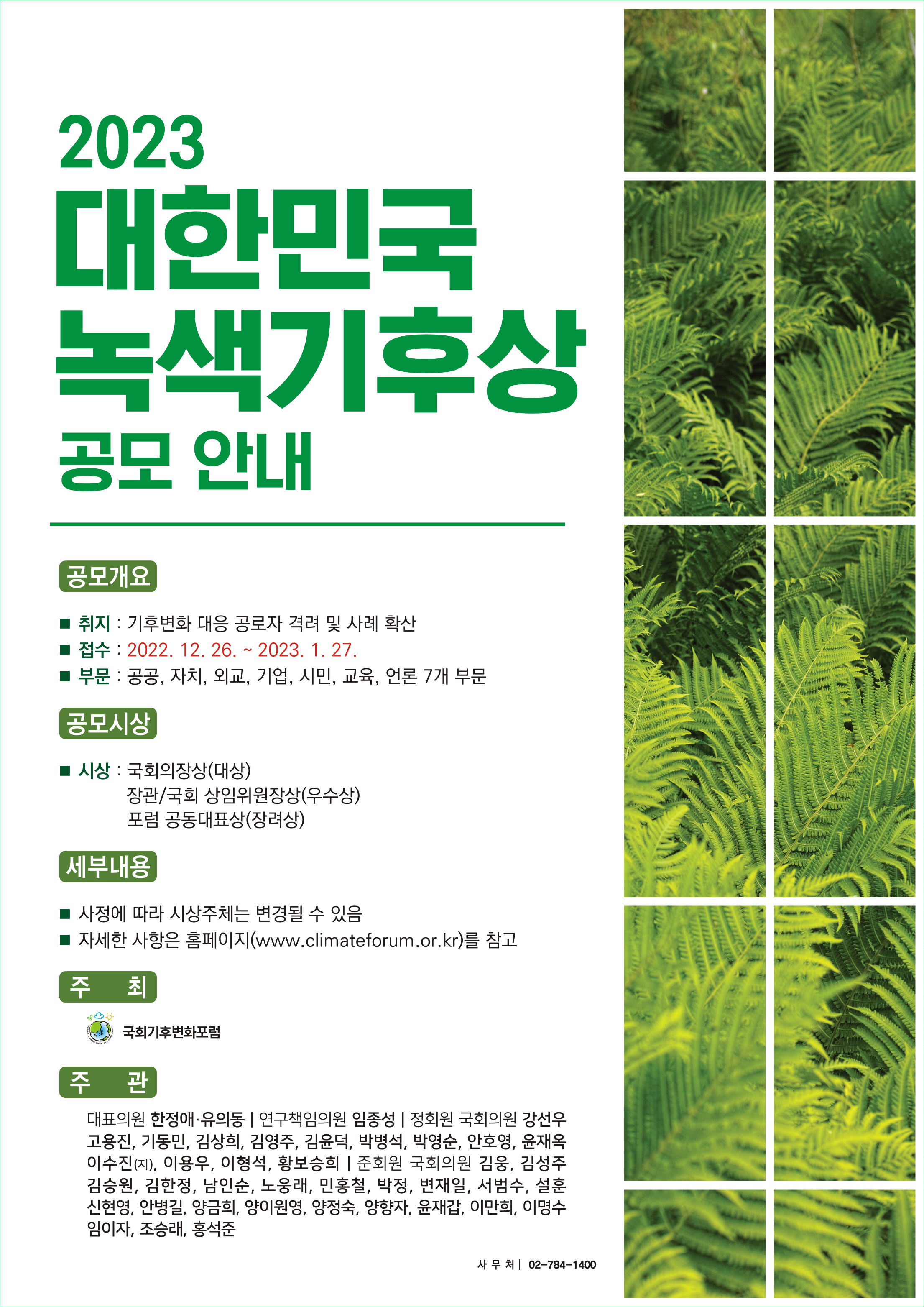 [국회기후변화포럼] 2023 대한민국 녹색기후상 공모 안내
