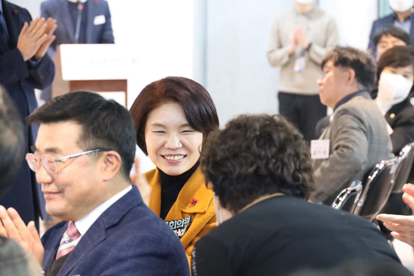 "여러분의 곁에 늘 한정애 의원이 있습니다."