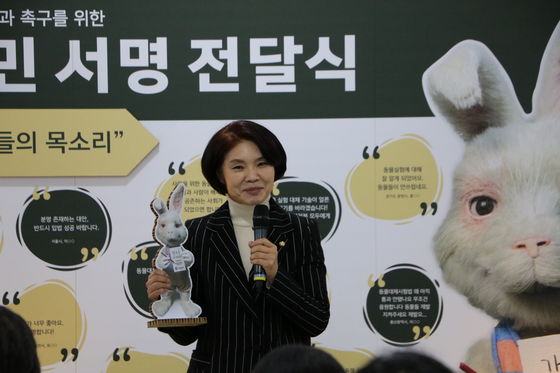 서명은 제가 공동대표로 있는 동물복지국회포럼과 「동물대체시험법 개발·보급 및 이용촉진에 관한 법률안」을 발의한 남인순 의원이 공동으로 받아, 식약처와 환경부에 전달했습니다.
