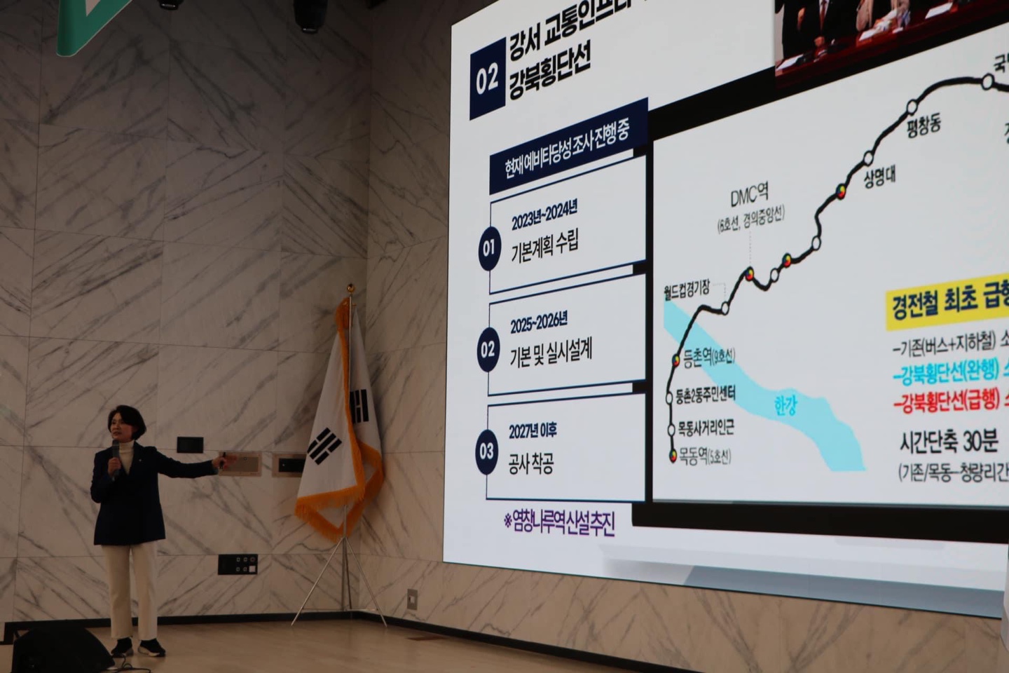 - 강북횡단선, 대장홍대선, 9호선증차추진현황, 화곡2ㆍ4ㆍ8동도심공공주택복합사업, 등촌2동 모아타운추진, 어르신사랑방신축과 어린이공원재정비, 봉제산다목적체육시설, 둘레길조성, 공영주차장확대, 남부시장주차장확대와 소방시설정비, 급경사로열선설치 등