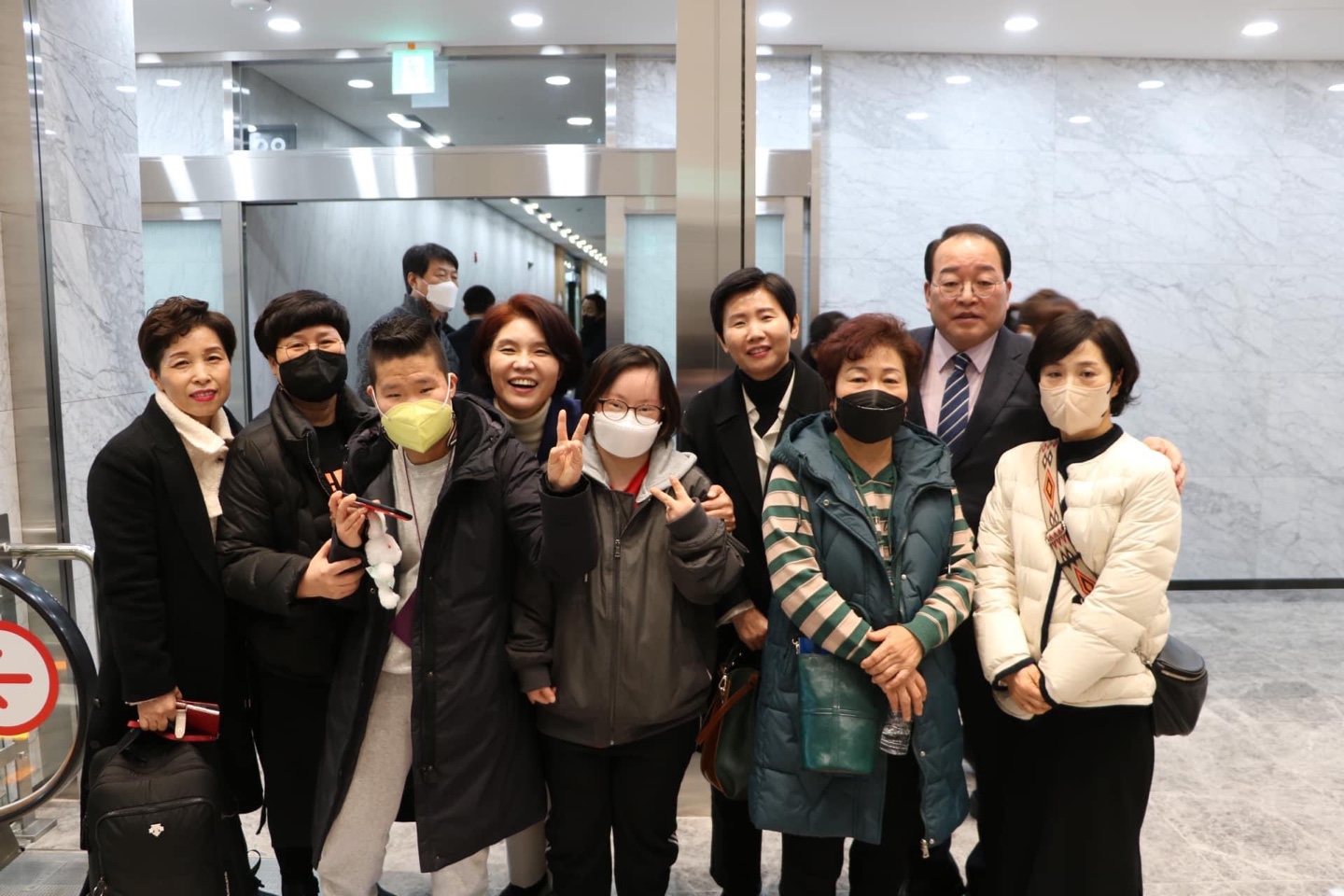 에스컬레이터 바로 앞에서 주민 여러분을 격렬히 환영하였습니다.