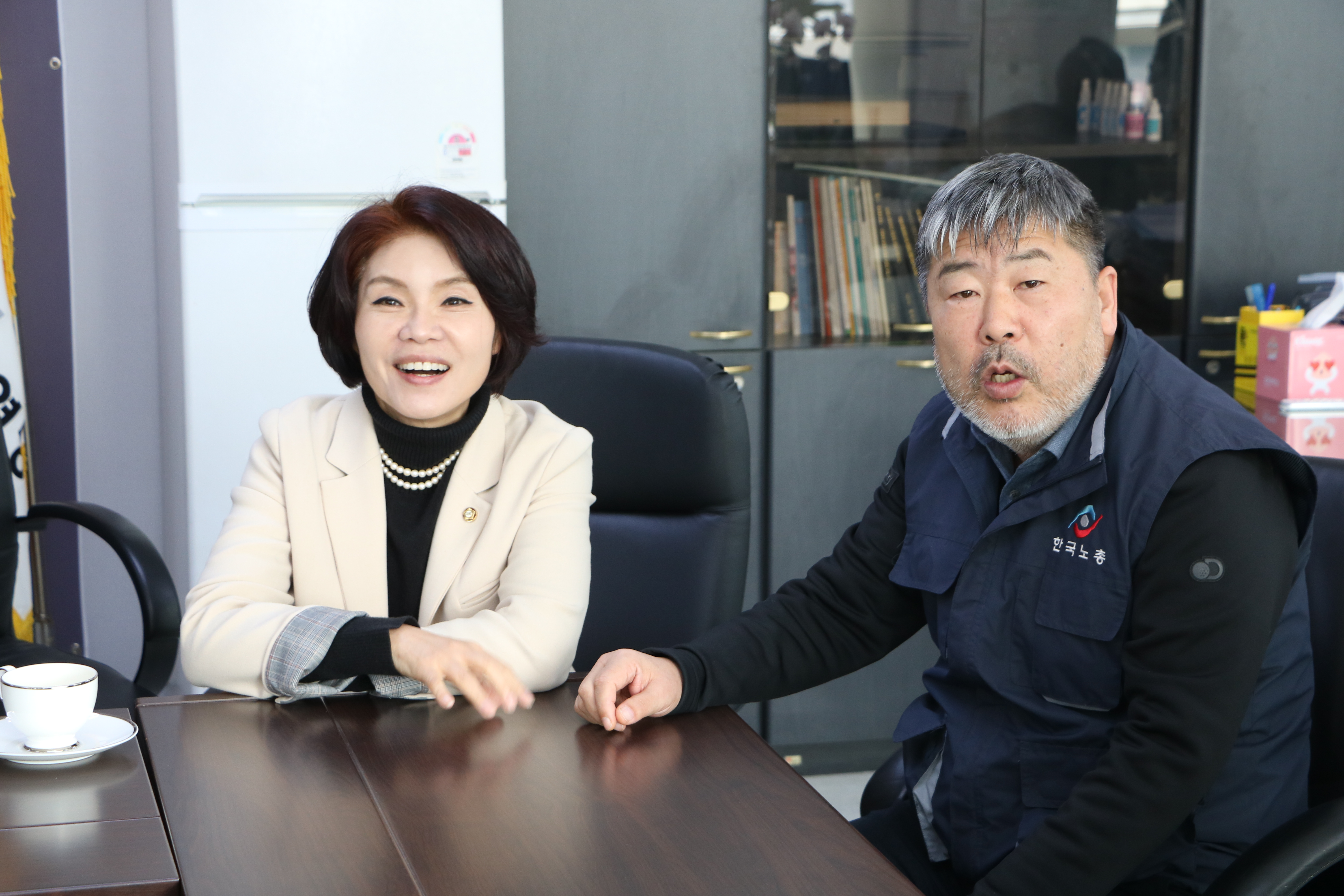 기념식에 들어가기 앞서, 김동명 한국노총 위원장님과 만나 소소한 이야기를 나누었습니다.