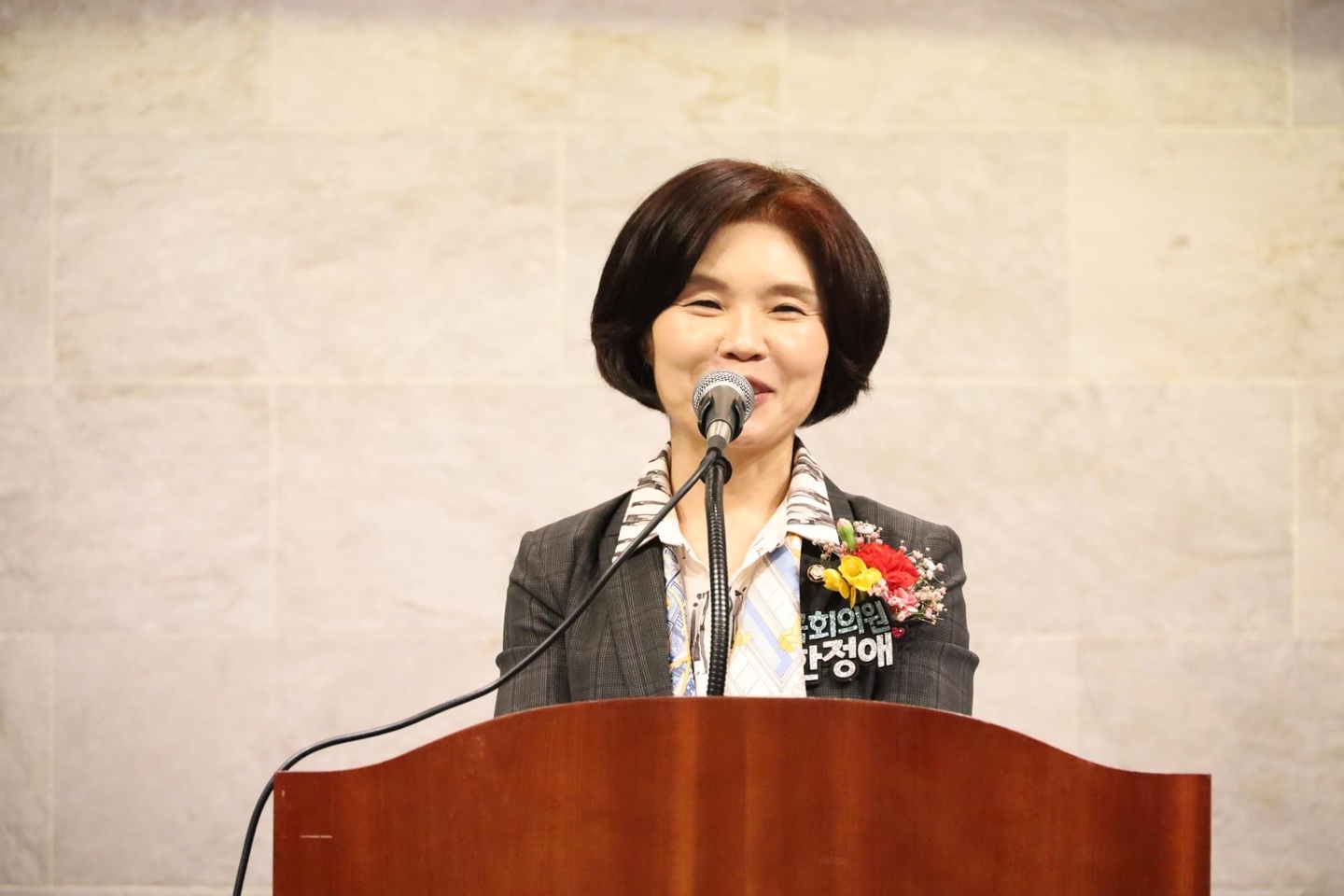 "여러분의 곁에 늘 한정애 의원이 있습니다."