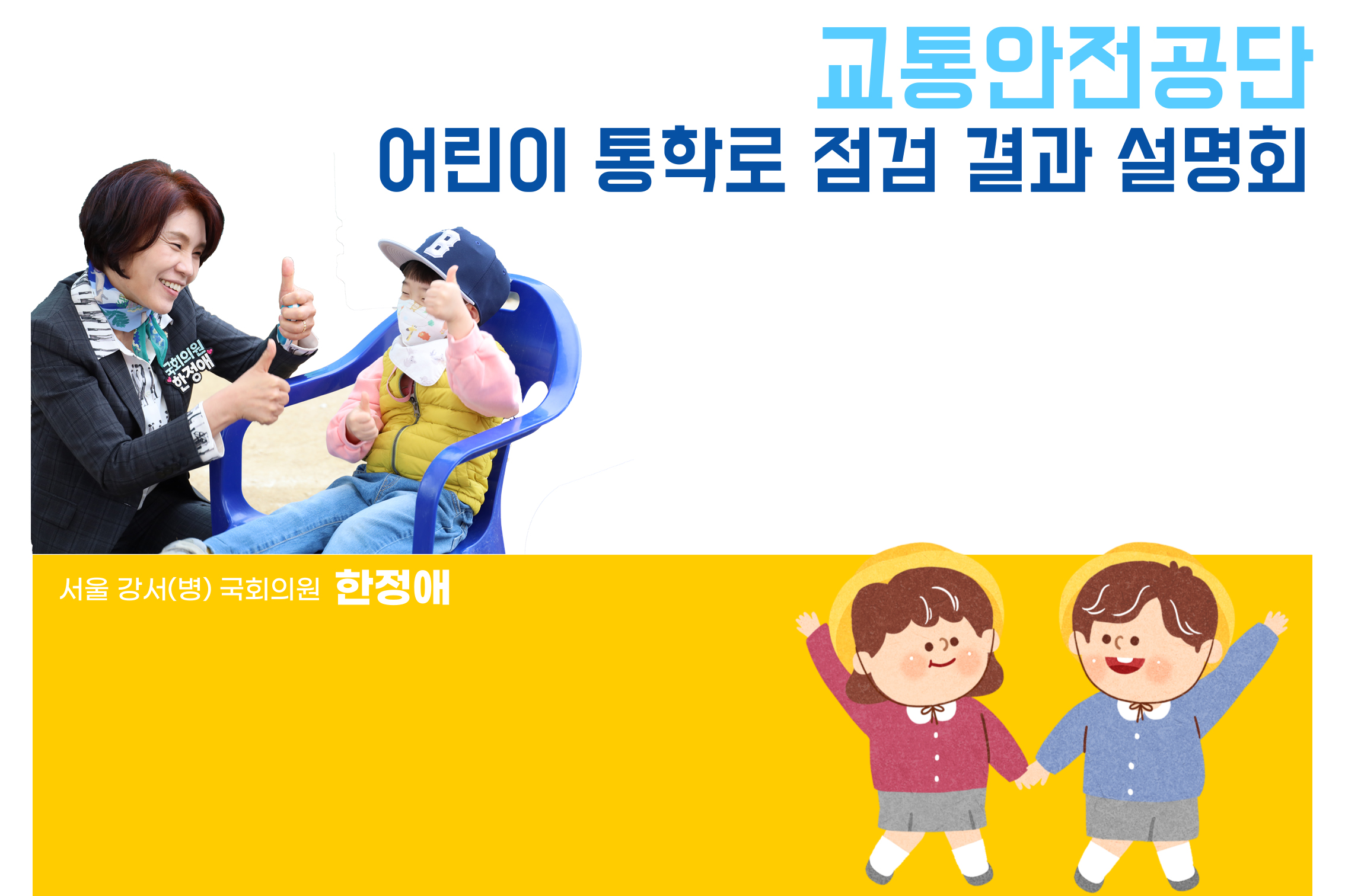 한정애 국회의원(더불어민주당 서울 강서병·보건복지위)이 지역 초등학교 통학로 교통안전점검 결과 설명회를 개최한다.