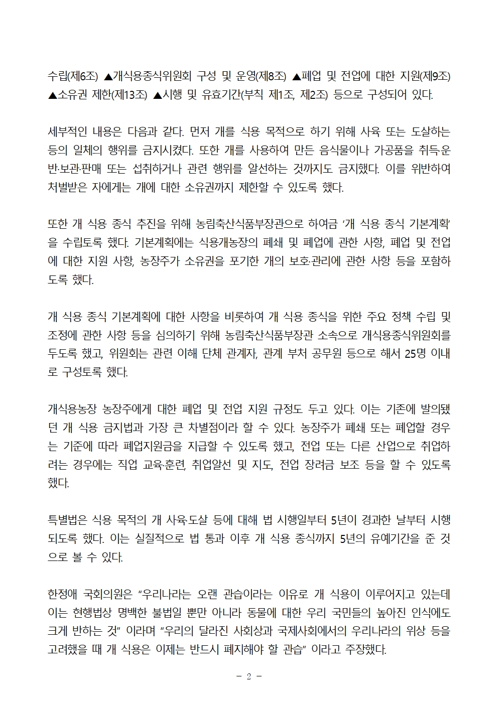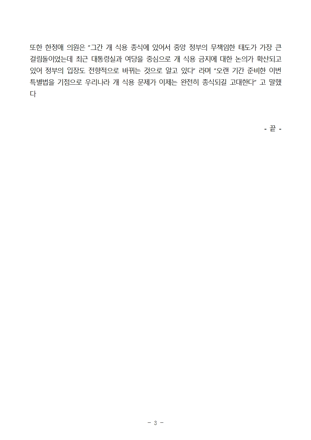 [보도자료] 한정애 국회의원, ‘개 식용 문제’ 마침표 찍는다