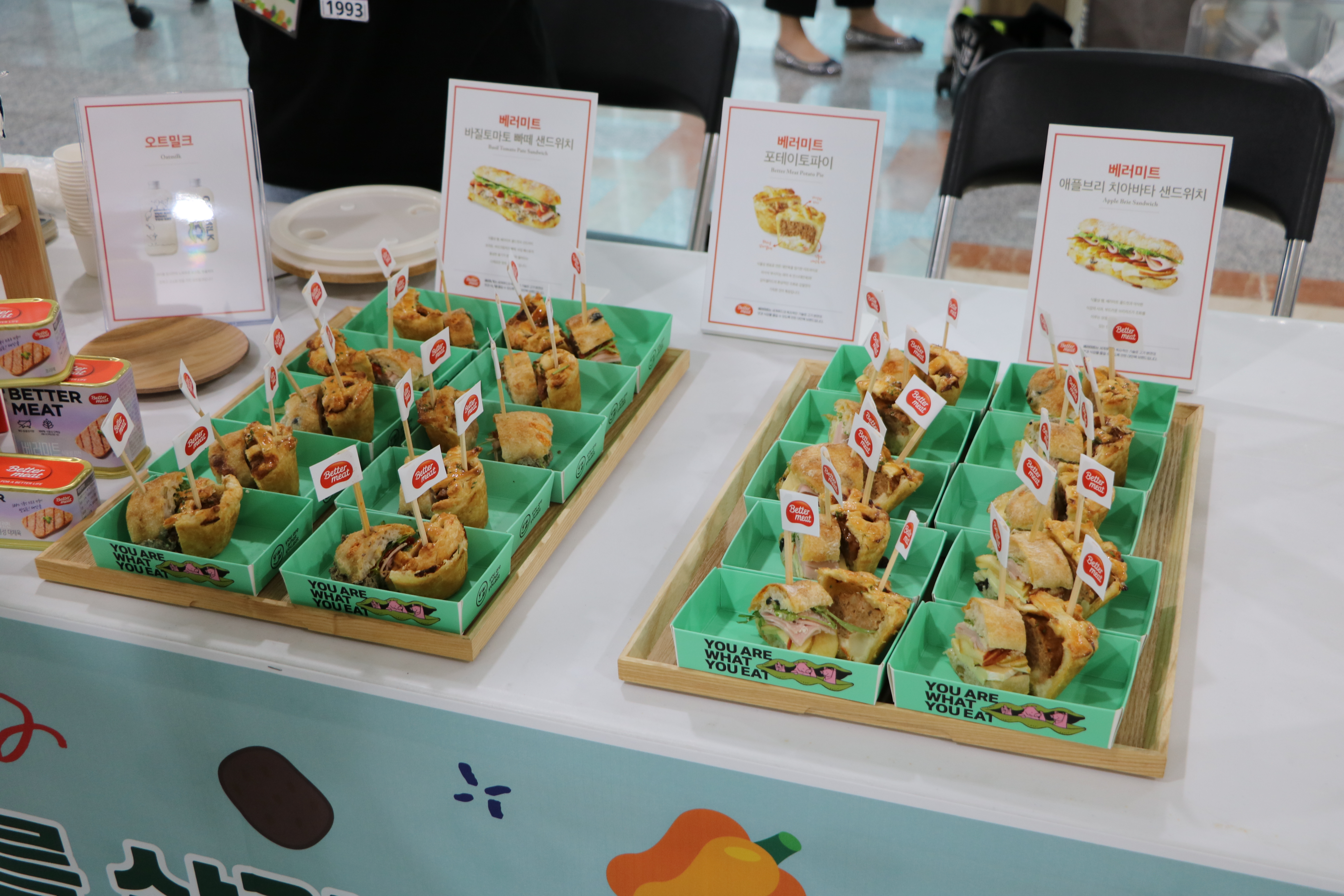 동물성 성분이 전혀 들어가지 않은 채식 만두, 고기가 들어가지 않은 튀김꼬치, 애플 브리 치아바타 샌드위치 등! 일반 육류 음식들과 구분이 안되는 모든 사람들의 기호에 맞는 음식들이 가판대를 가득 채웠습니다.