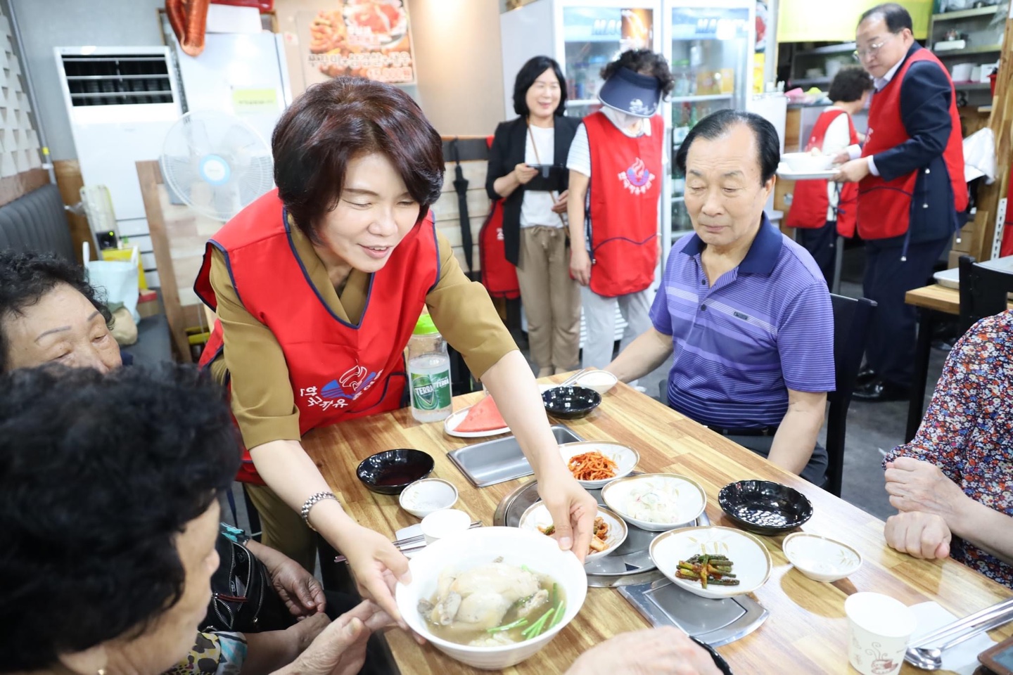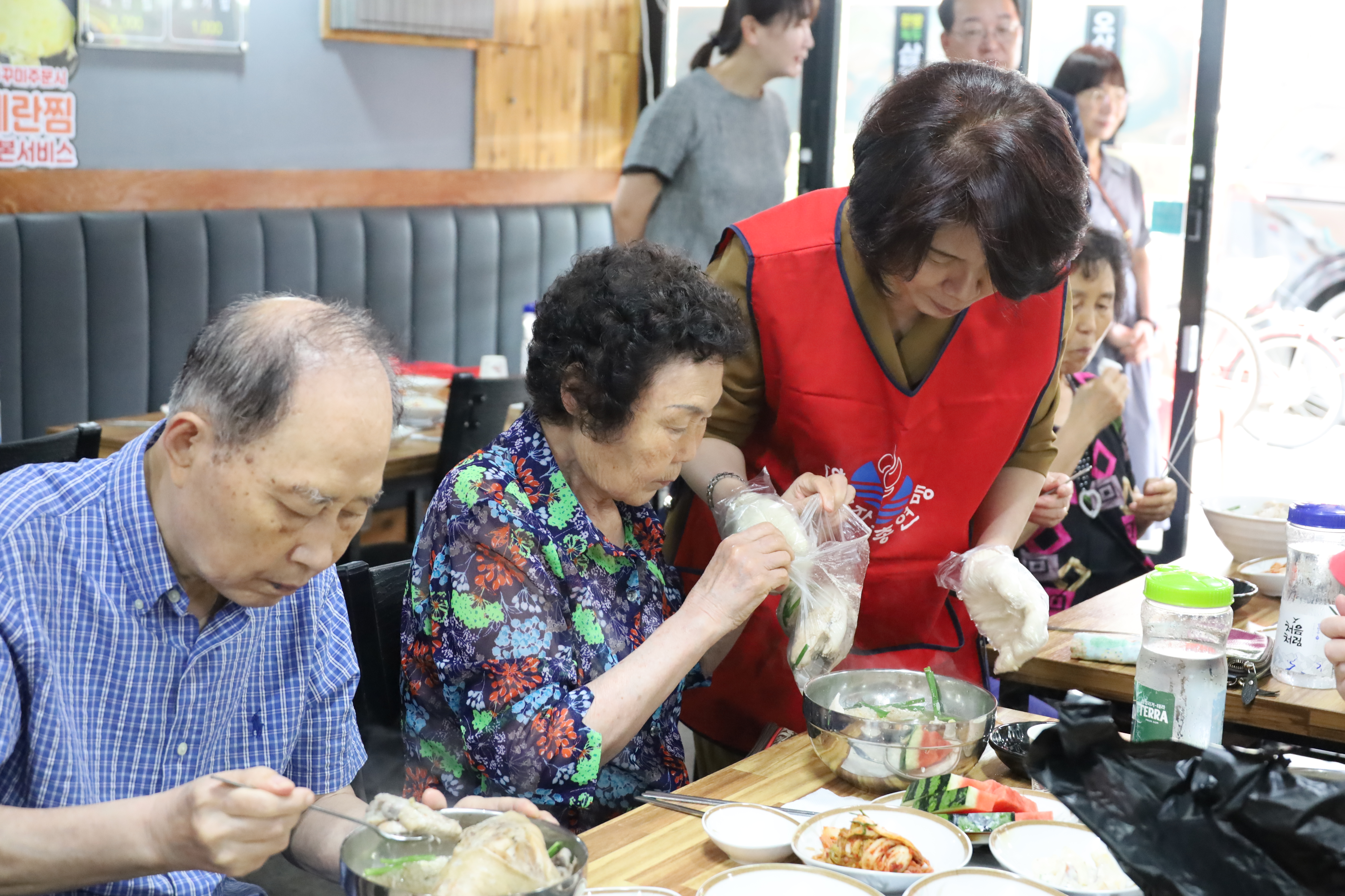 오늘의 미션은 건강한 재료와 함께 푹 삶아진 삼계탕을 어르신들께 전달드리는 일입니다.