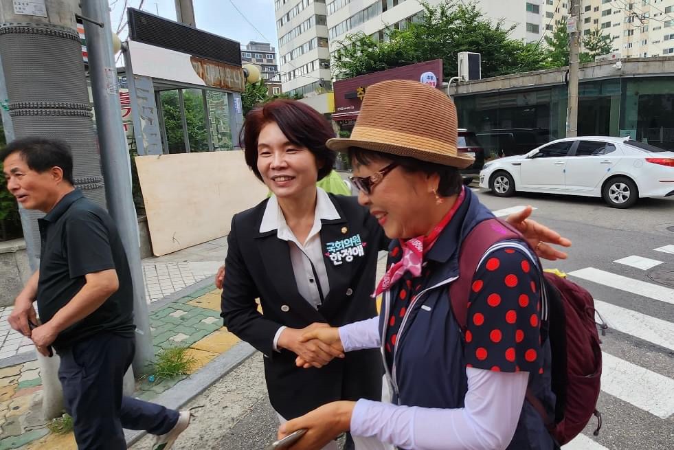 "여러분의 곁에 늘 한정애 의원이 있습니다."