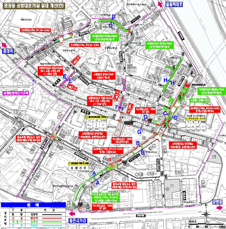 - 보도확장 : 공항대로75길(연장 170m, 서측 보도확장 1.7m→3.5m)