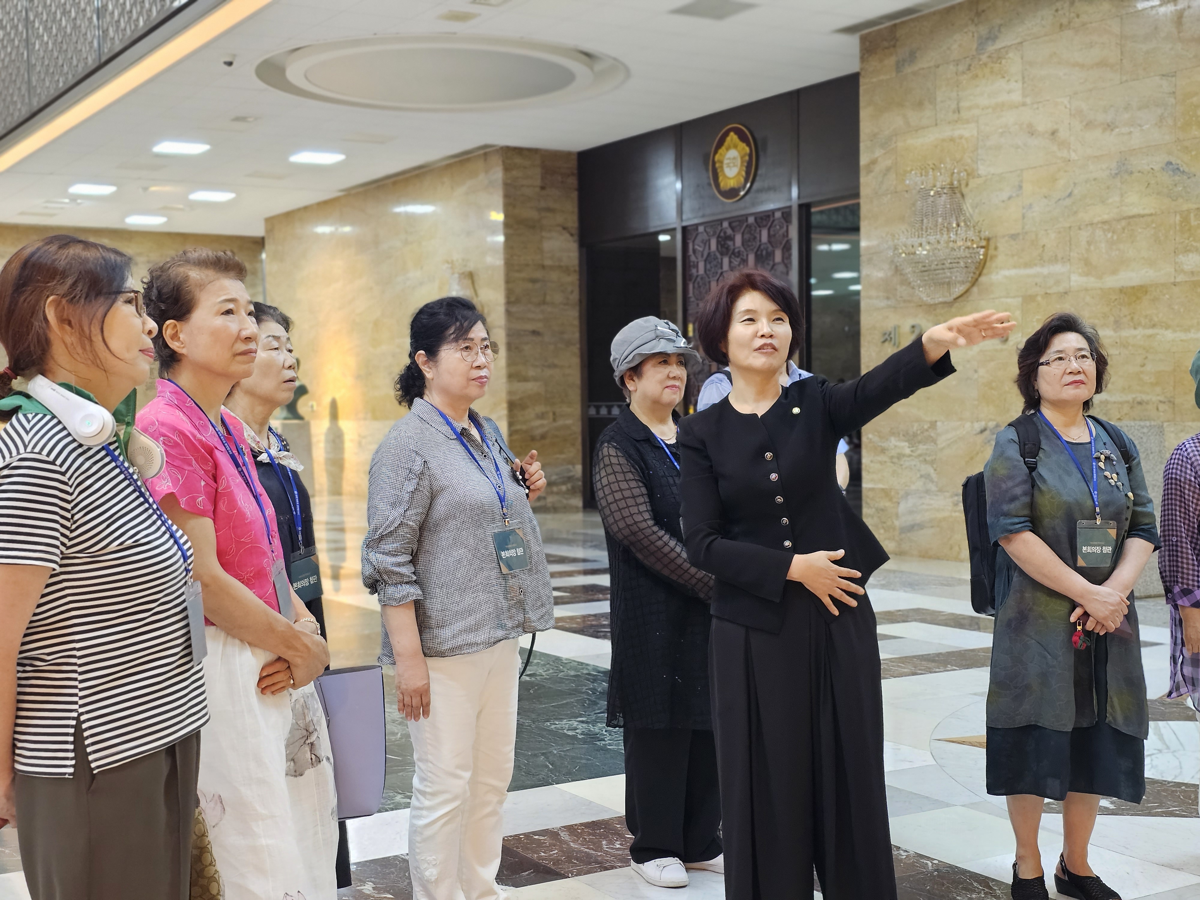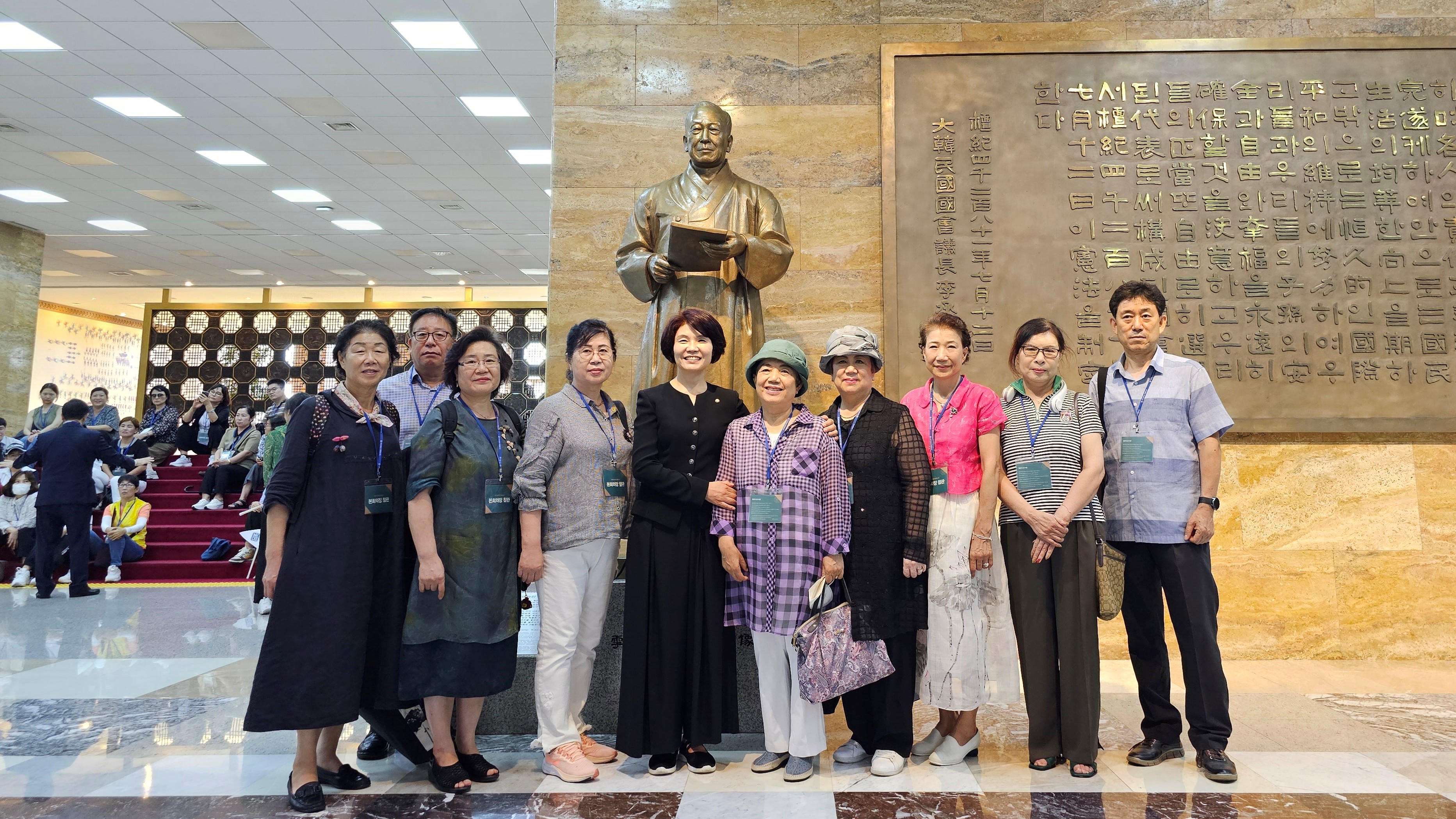 먼저 참관을 통해 국회에 대해 설명을 듣고 본청 로텐더 홀에서 임시정부와 의정원에 대해 이야기하는 시간을 가졌습니다.