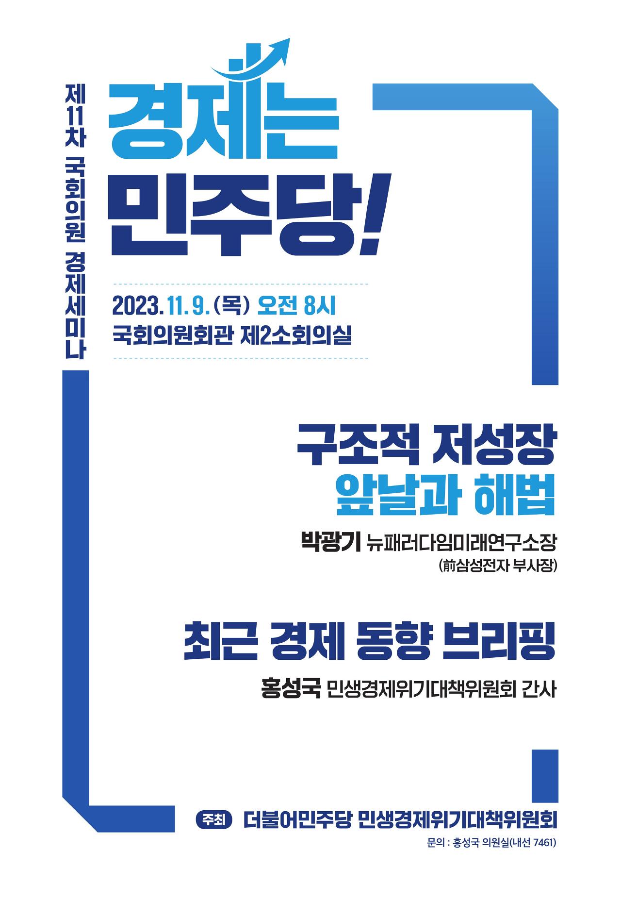 아침 일찍 더불어민주당 민생경제위기대책위원회의 제11차 <경제는 민주당-구조적 저성장, 앞날과 해법> 세미나에 참석했습니다.