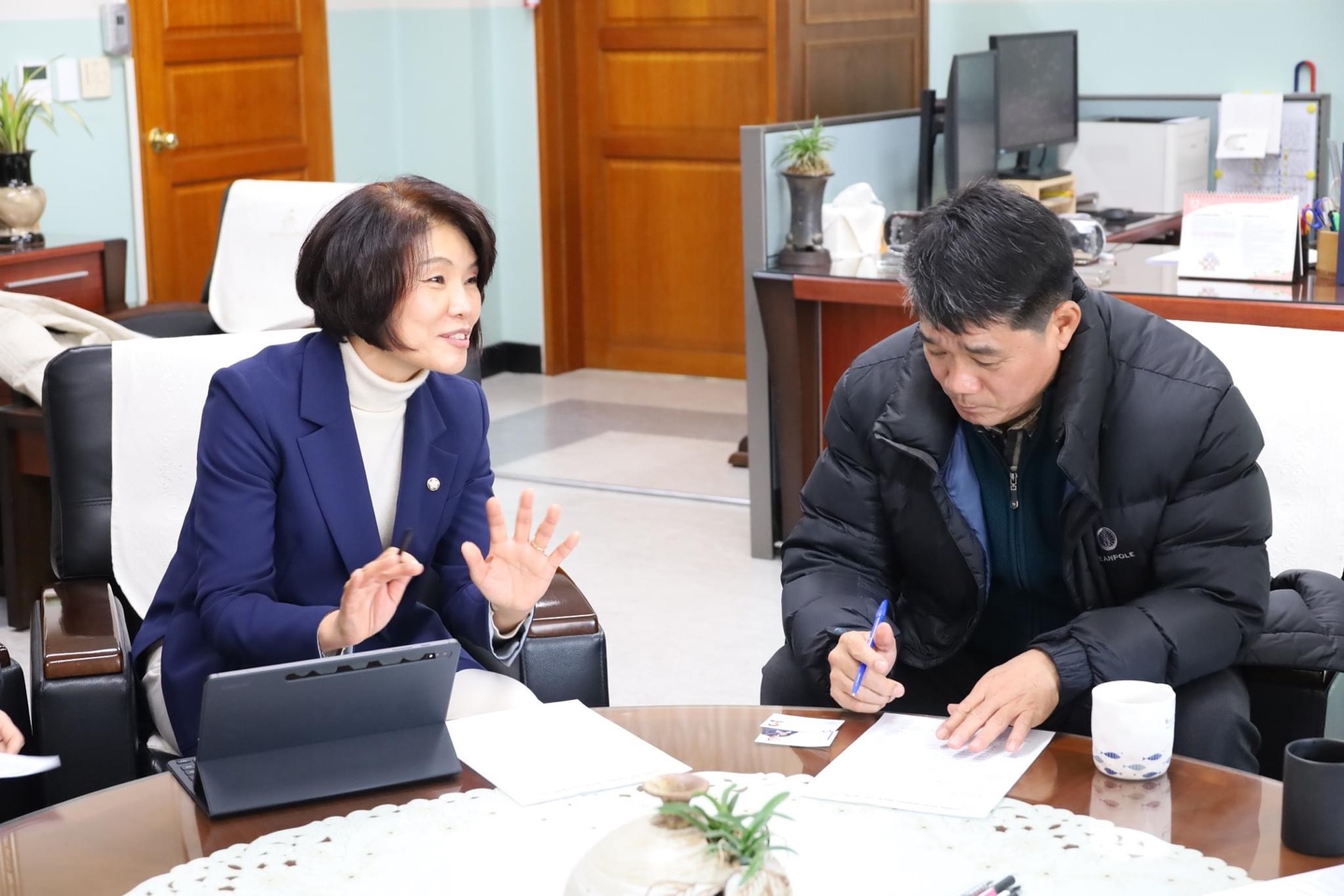"여러분의 곁에 늘 한정애 의원이 있습니다."
