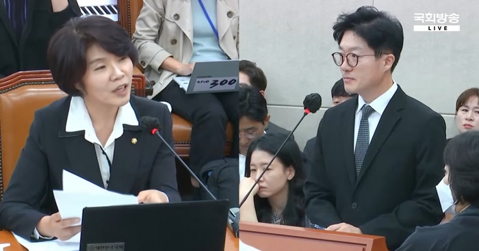 [사진 출처 :  한정애의원 똑닥 고승윤대표 질의 장면, 국회방송 제공 / 연합뉴스, 보건복지부 제공]