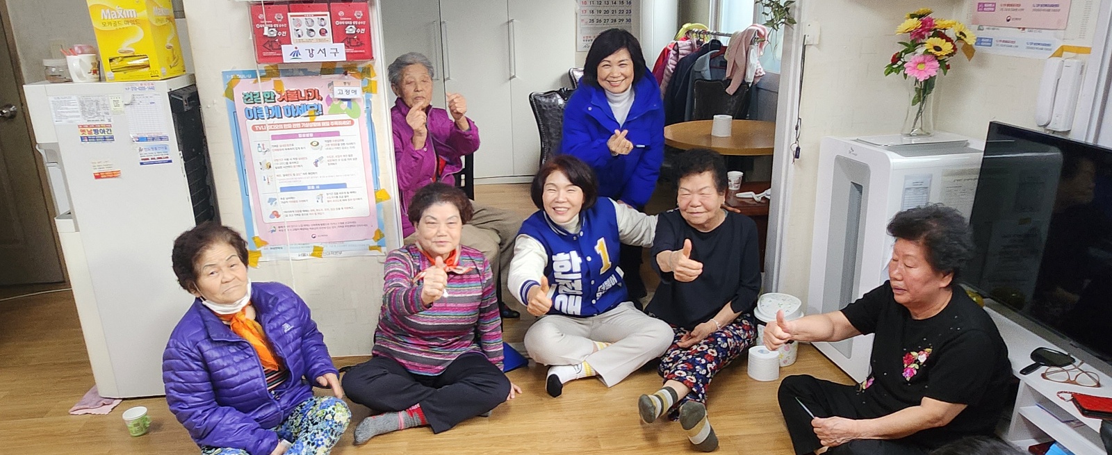 우리 어르신들께서 하트와 엄지척을 선물해 주시며, 따뜻하게 맞이해주셨습니다.