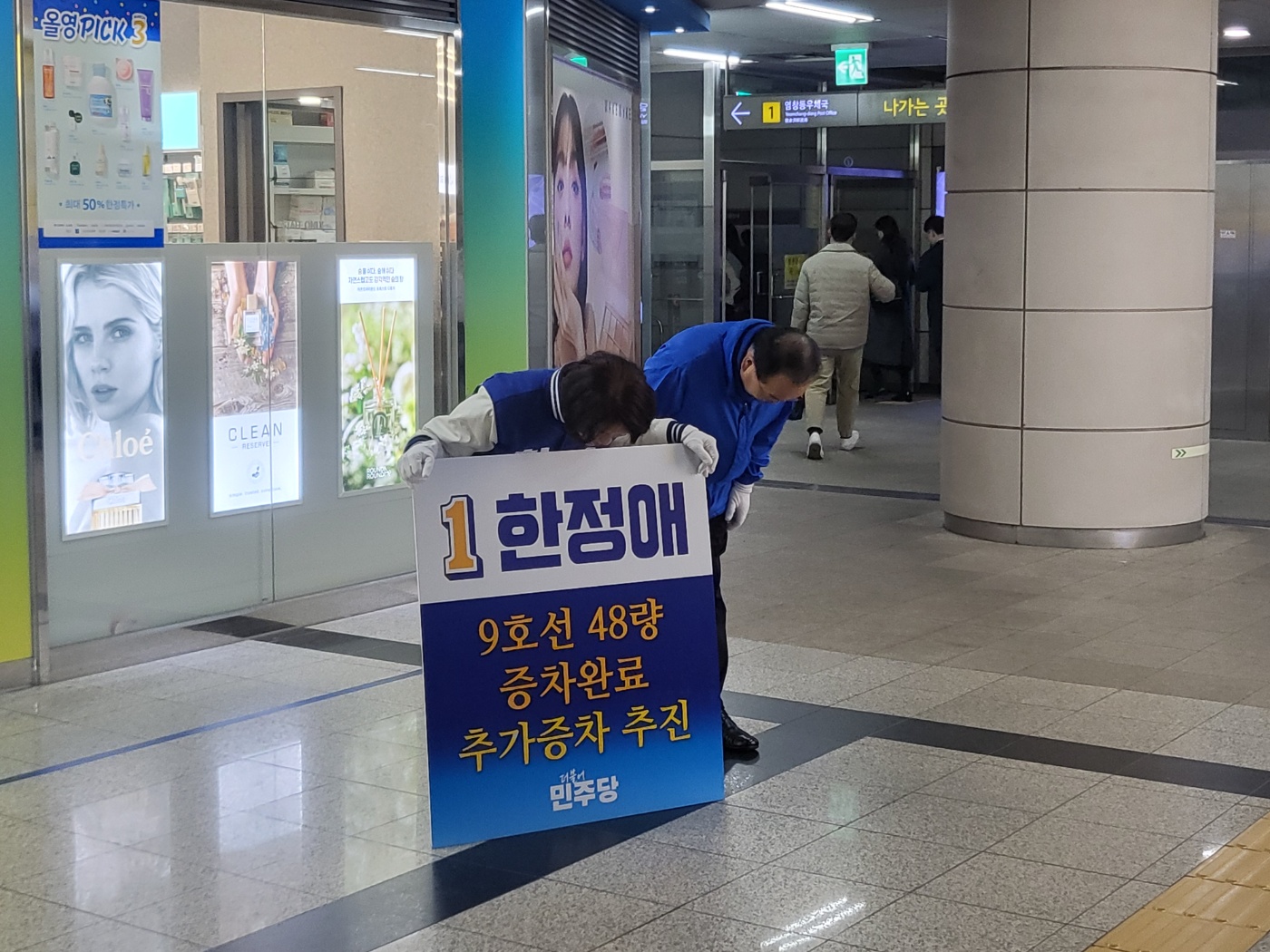11일(월), 오늘은 가양역에서 출근 인사를 드리며 하루를 시작했습니다.