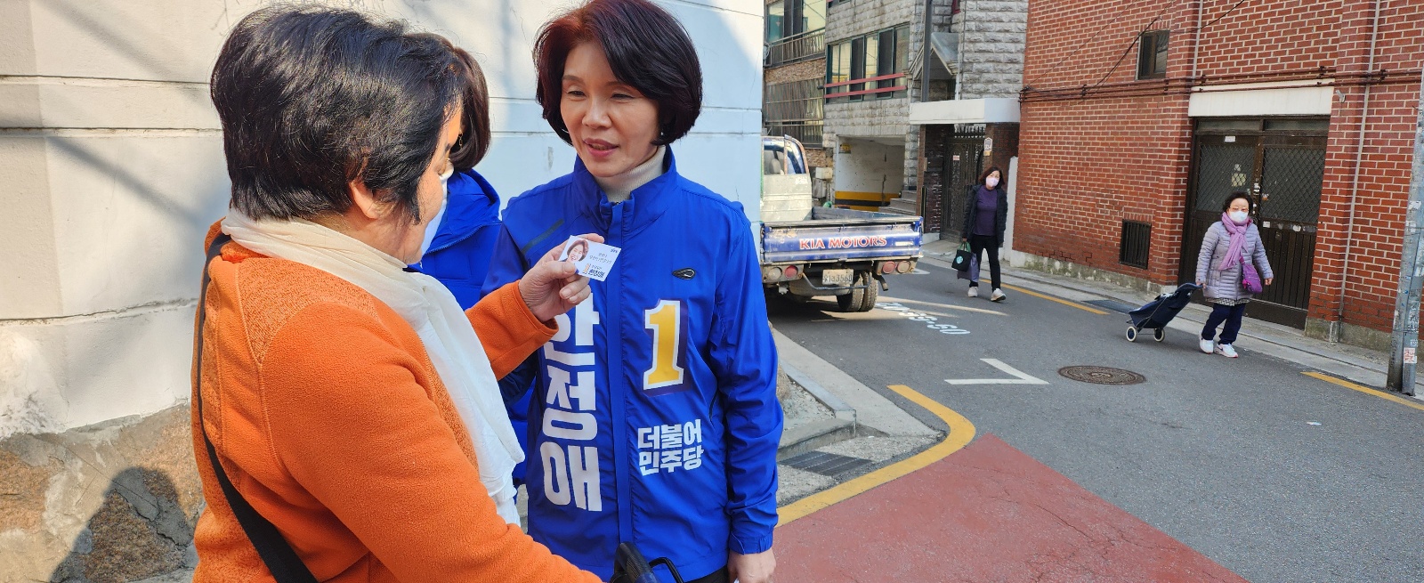 "여러분의 곁에 늘 한정애 의원이 있습니다."