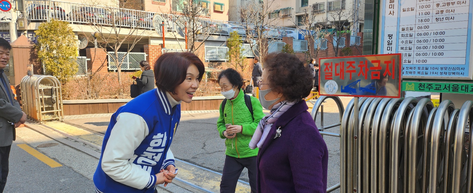 출근인사 후 화곡본동 성당에서 미사를 마치고 나오는 주민들께 인사를 드렸습니다.